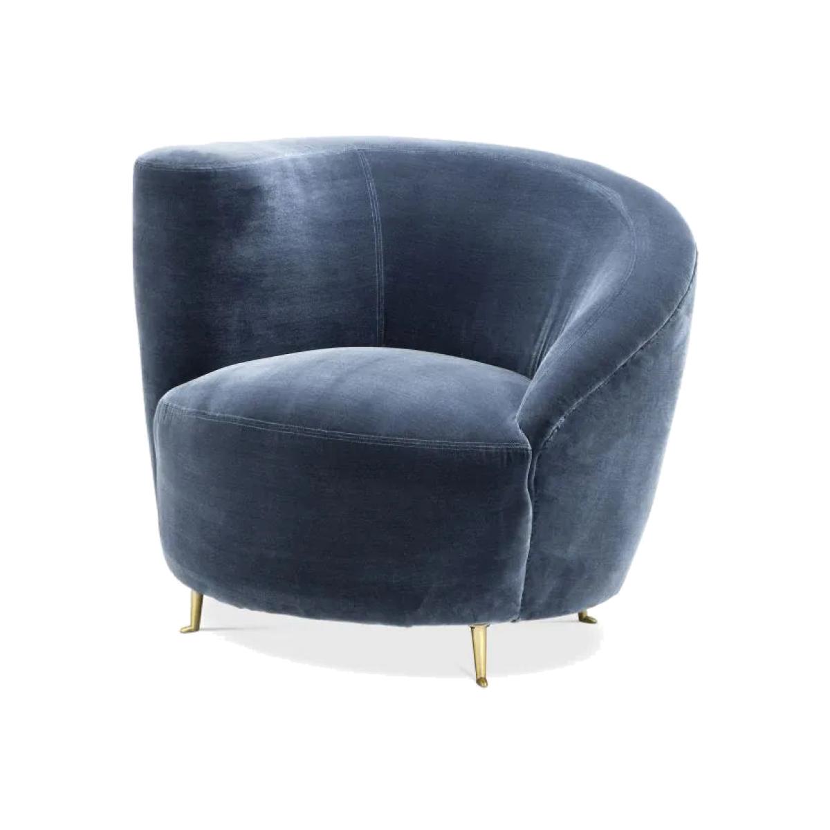 Bring Mid-Century Modern style into your home interior with the gorgeous Khan Chair. With its clean lines, gentle organic curves and faded blue velvet upholstery this design chair adds vintage charm to your lounge or living room. Finish/Colour: Blue