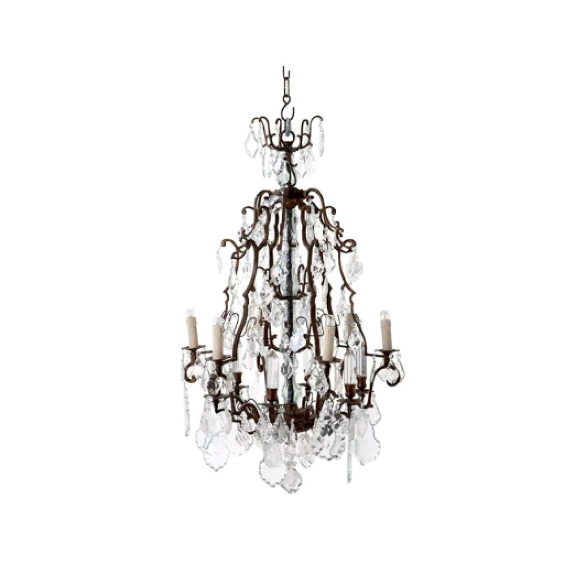 Channel French Boudoir chic into your home with the enchanting Château De Wideville Luster. This classic chandelier comprises an antique brass luminaire with sparkling clear glass droplets and features 6 candle-shaped fittings. Dimensions: ø 60 x H. 90 cm