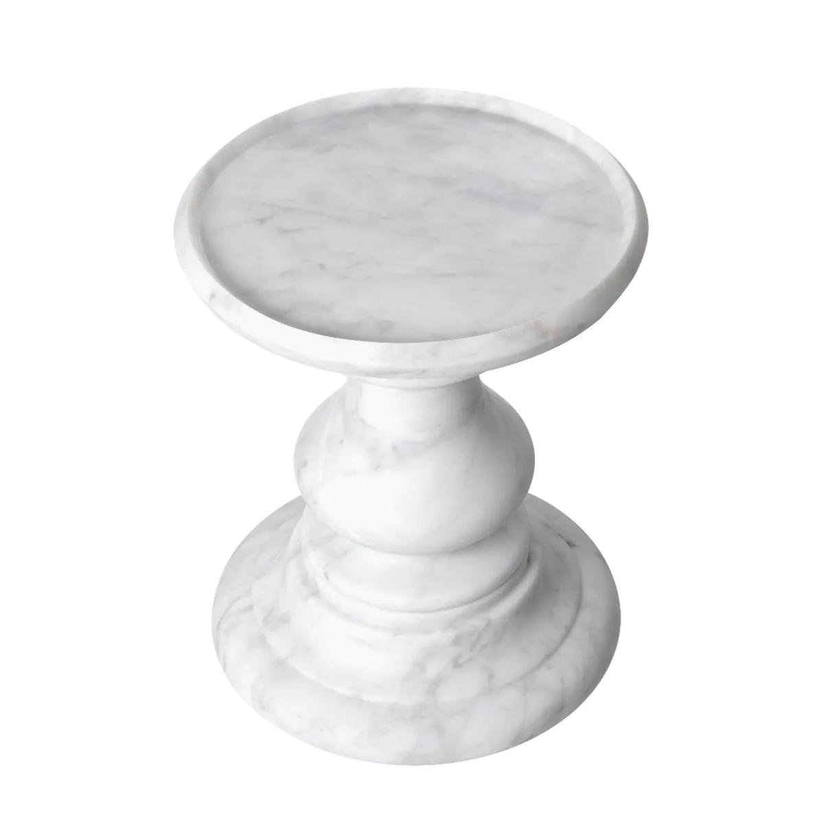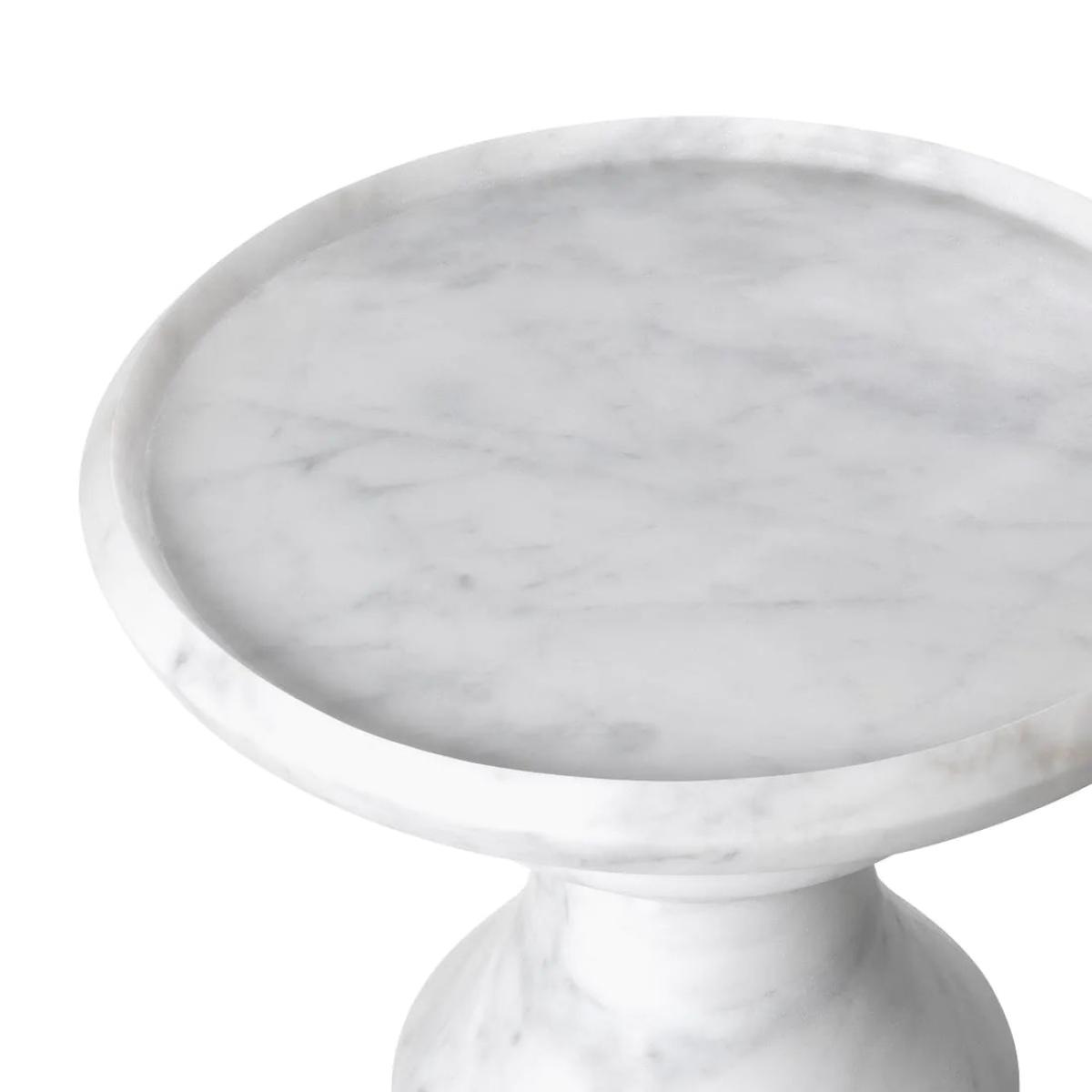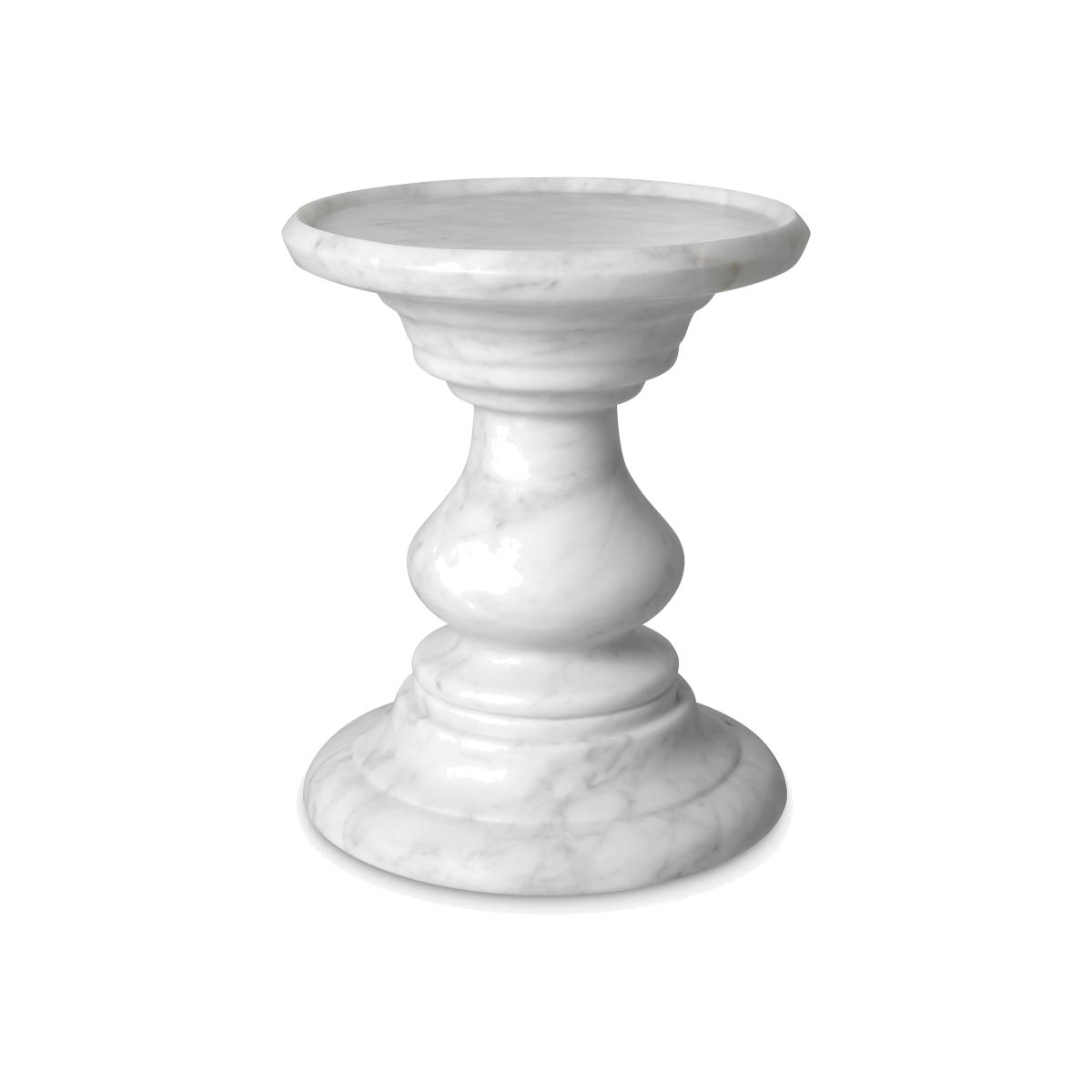 Reminiscent of a chess piece, Side Table Melody is a perfect addition for any modern or eclectic interior décor. Entirely crafted from a solid piece of white Italian Carrara marble, it features a unique pattern of grey veins. The honed finish is created by stopping short of the last stage of polishing, leaving the marble with a matte look and a velvet-like t Finish/Colour: White, Off-white