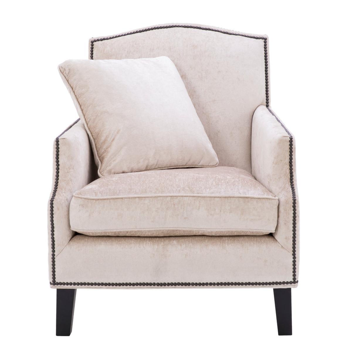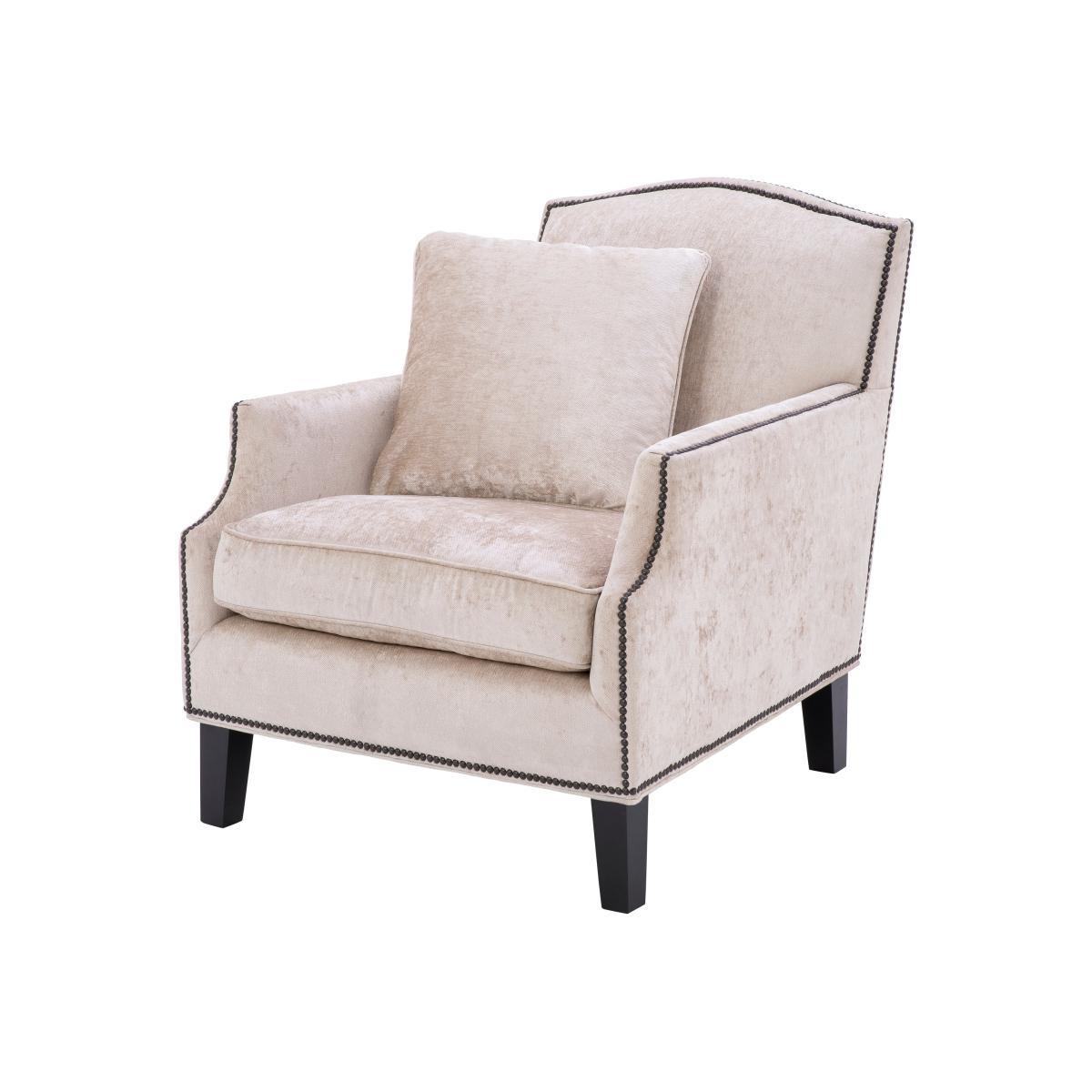 Grant your living room classic appeal with the magnificent Merlin Chair, featuring black tapered legs and a comfy cushion. The velvety Mirage off-white upholstery exudes glamour and the antique bronze nailhead trim accentuates the elegant design. Downloads:. Item specification sheet. Finish: Mirage off-white | antique bronze nails. *Moot Trading Ltd is not a lender and acts only as an introducer. The credit product is provided by Klarna Bank AB (publ). Credit is only available to permanent UK residents aged 18 and over, subject to status. Terms and conditions apply. Please note that the following products are not regulated by the FCA: Pay in 30 days and Pay in 3 instalments. Read More.