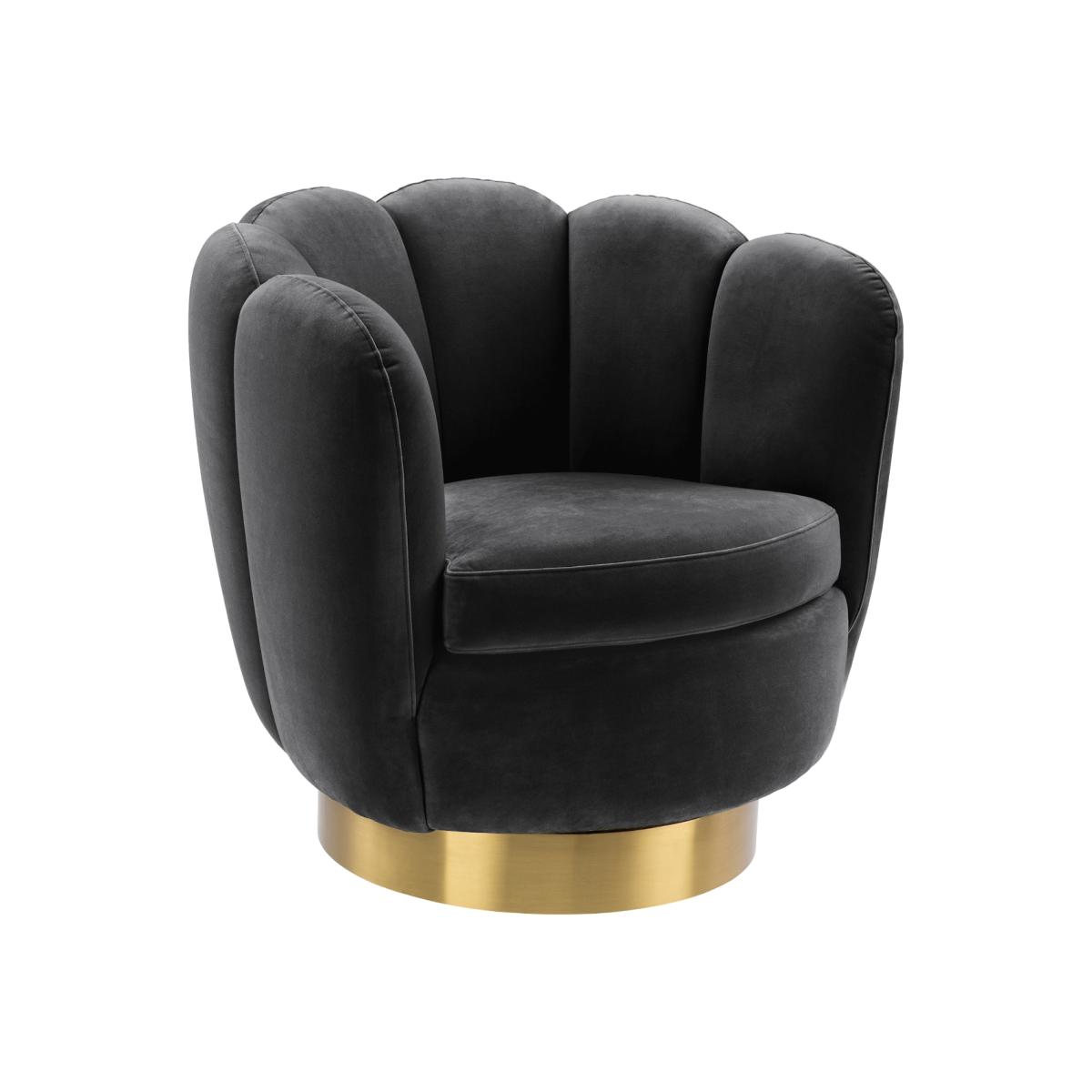Design. The Mirage Swivel Chair by Eichholtz has a fifties-inspired design that will add luxurious style to any room of the house. The unique cocooning silhouette is upholstered in a lush velvet fabric in deep Savona Grey, allowing a seamless blend into any colour scheme. A striking Brushed Brass base adds a pop of colour to attract the eye, and has a swivel mechanism for a modern touch. Mirage is certainly a one-of-a-kind piece that will round out your interior design. Other options available within this range, for more information and to discuss additional options complete our. Enquiry form. Or. Contact our specialist brand advisors.