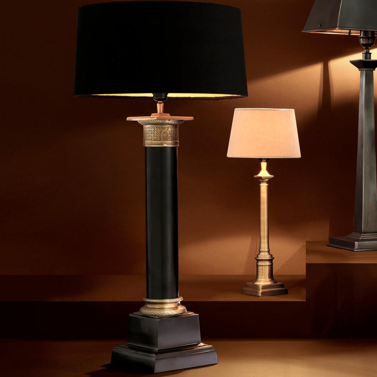 Add the finishing touch to your interior scheme with the Monaco Table Lamp. Radiating restrained elegance, this luxury lighting solution is the perfect complement for classic and contemporary spaces alike. Inspired by Corinthian columns, it features a pillar-like black body and plinth base with brass finished accents. The supplied black lampshade encourages a decadent illumination. Downloads:. Item specification sheet. Energy label. Finish: Black finish | antique brass finish. *Moot Trading Ltd is not a lender and acts only as an introducer. The credit product is provided by Klarna Bank AB (publ). Credit is only available to permanent UK residents aged 18 and over, subject to status. Terms and conditions apply. Please note that the following products are not regulated by the FCA: Pay in 30 days and Pay in 3 instalments. Read More.