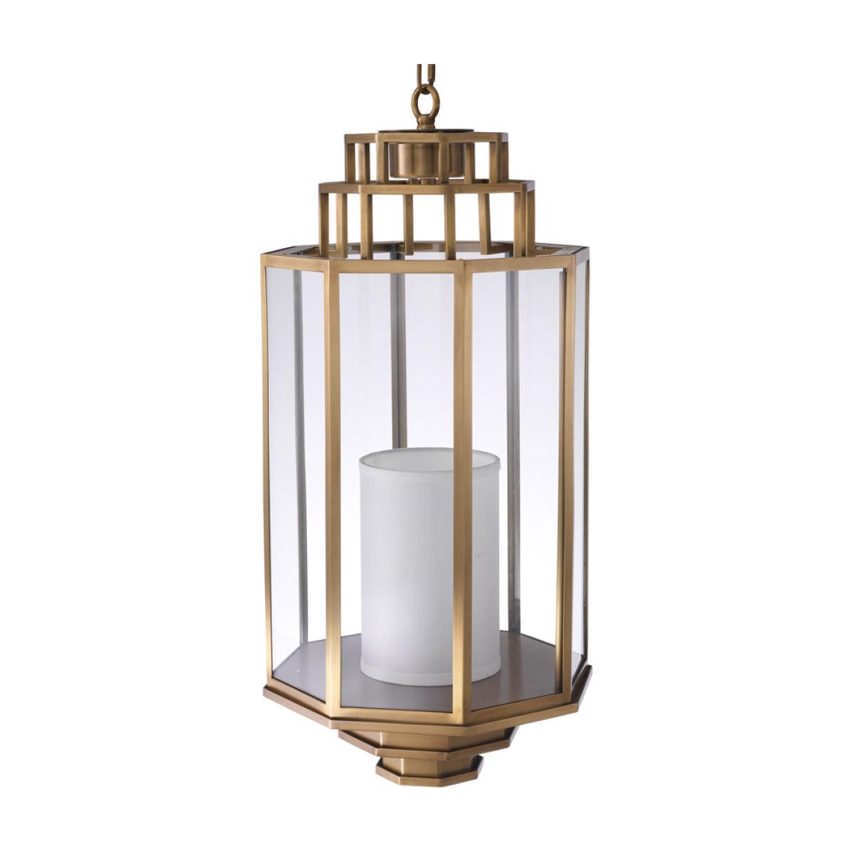Tastefully blending contemporary design with a touch of industrial flair, the Monticello Lantern is an updated classic. Crafted from metal in an antique brass finish, this craftsman-style design showcases an octagonal frame with clear glass panels around a cylindric cream lampshade. Dimensions: H: 69 x Dia: 32.5 cm Bulb Type: 1 x E27 Max 40W - Not included Materials: Metal Assembly Required: No. Care instructions: For general maintenance, periodically dust off your lighting with a feather duster or a soft clean cloth, preferably weekly. Downloads: Product Specification Sheet
