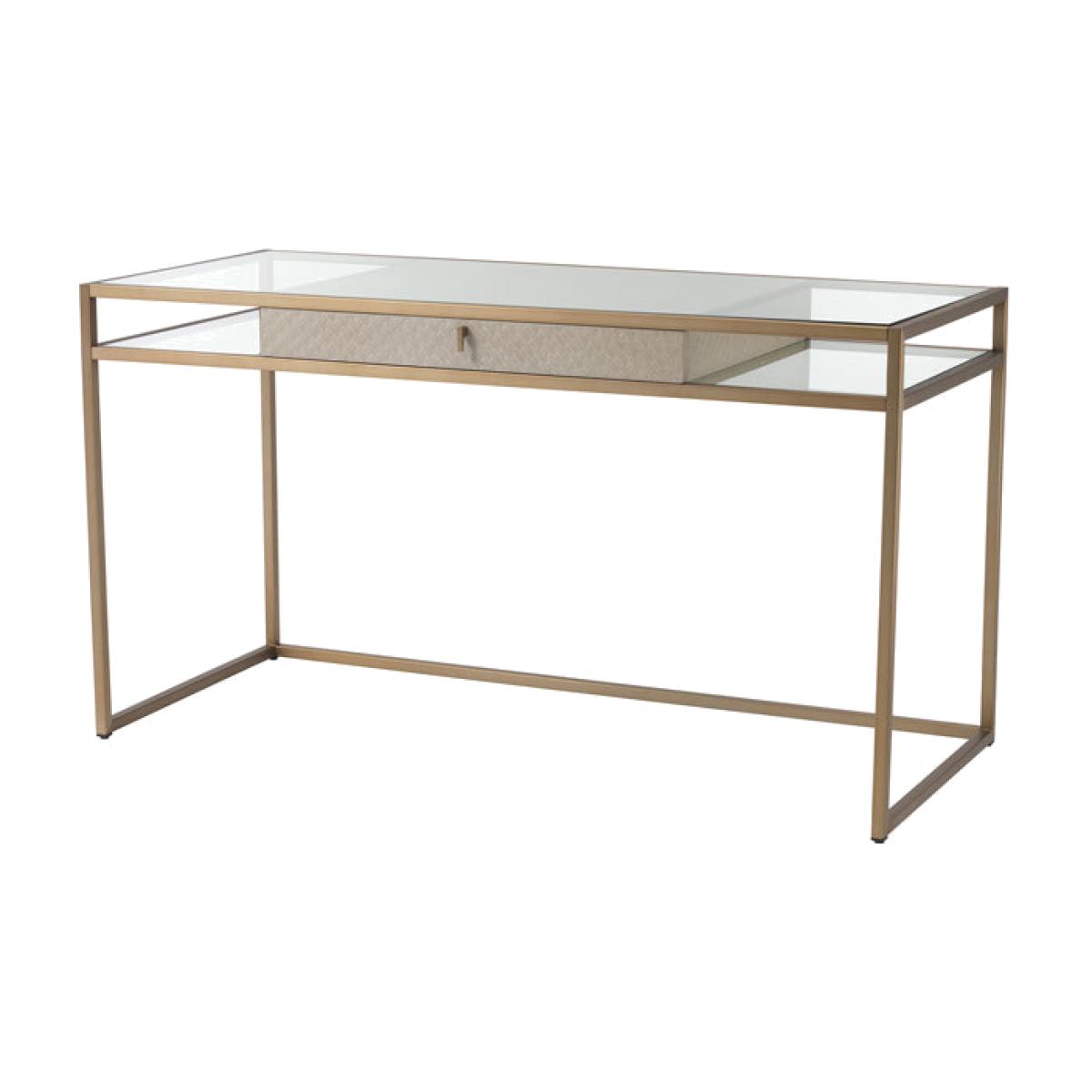 Pairing Bauhaus style with a Mid-Century Modern look, the Napa Valley Desk showcases a sleek frame with brushed brass finish, a clear glass top and a drawer of woven washed oak veneer. Dimensions:. View More. Pairing Bauhaus style with a Mid-Century Modern look, the Napa Valley Desk showcases a sleek frame with brushed brass finish, a clear glass top and a drawer of woven washed oak veneer.