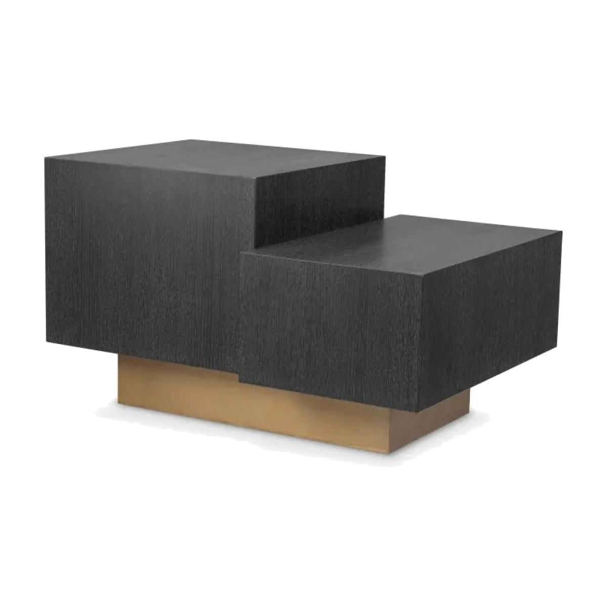 Featuring a square and a rectangular block on a right-angeld base, Side Table Nerone channels a cubist vibe to your decor. Executed in charcoal grey oak veneer and brushed brass, this piece is both stylish and functional. Finish/Colour: Charcoal