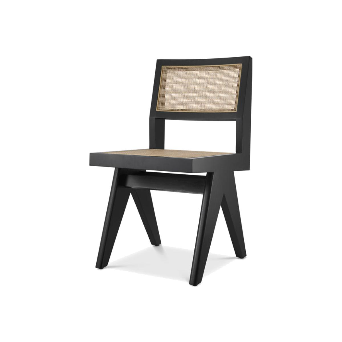 The classic black Niclas Dining Chair has the minimalist appeal of iconic Chandigarh furniture. Crafted from solid wood, this beautiful chair features the V-shaped legs that are characteristic of c. View More. The classic black Niclas Dining Chair has the minimalist appeal of iconic Chandigarh furniture. Crafted from solid wood, this beautiful chair features the V-shaped legs that are characteristic of celebrated vintage designs from the 1950s and 1960s. The openwork seat and backrest comprise handwoven rattan cane.