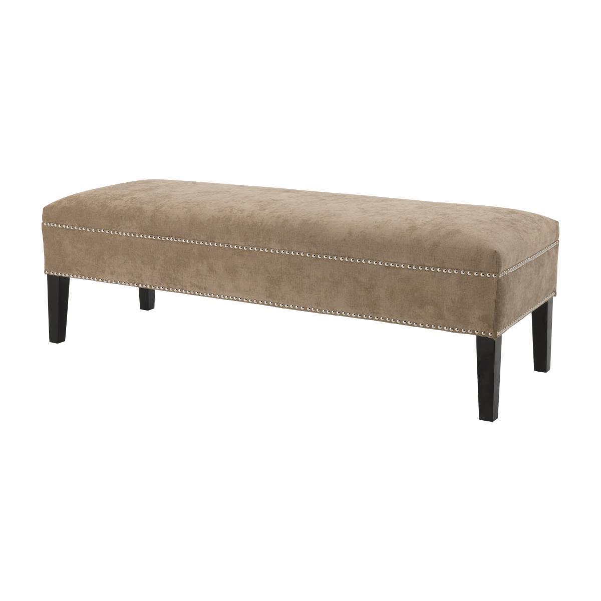 Welcome the gracious style of the Nicolette Bench into your home. This elegant ottoman with greige velvet upholstery, nickel nailhead trim, and black timber legs will look great in your hallway, lounge or bedroom. Downloads:. Item specification sheet. Finish: Greige velvet | nickel nails | black legs. *Moot Trading Ltd is not a lender and acts only as an introducer. The credit product is provided by Klarna Bank AB (publ). Credit is only available to permanent UK residents aged 18 and over, subject to status. Terms and conditions apply. Please note that the following products are not regulated by the FCA: Pay in 30 days and Pay in 3 instalments. Read More.
