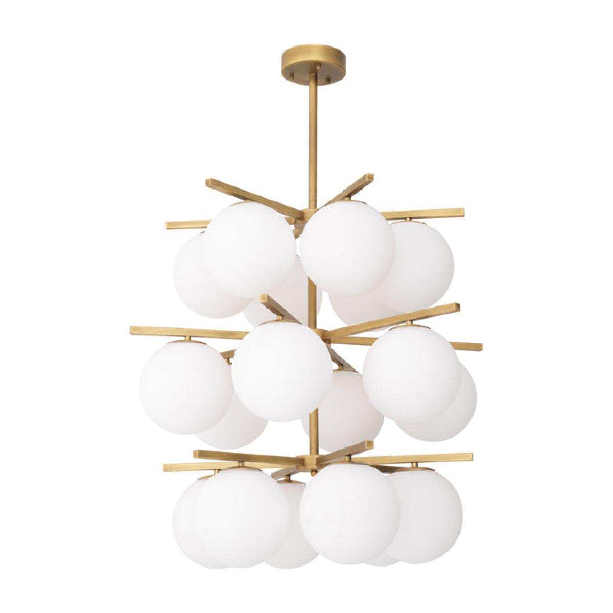 Put your seating or dining area in the spotlight with Chandelier Noa. Its antique brass finish fixture has three tiers that each charmingly showcase 6 white glass globes, perfect for diffusing optimal light in your room. Creating beautiful optical effects on your interior surroundings, this retro style pendant lamp will impress with its bold look. *Moot Trading Ltd is not a lender and acts only as an introducer. The credit product is provided by Klarna Bank AB (publ). Credit is only available to permanent UK residents aged 18 and over, subject to status. Terms and conditions apply. Please note that the following products are not regulated by the FCA: Pay in 30 days and Pay in 3 instalments. Read More.
