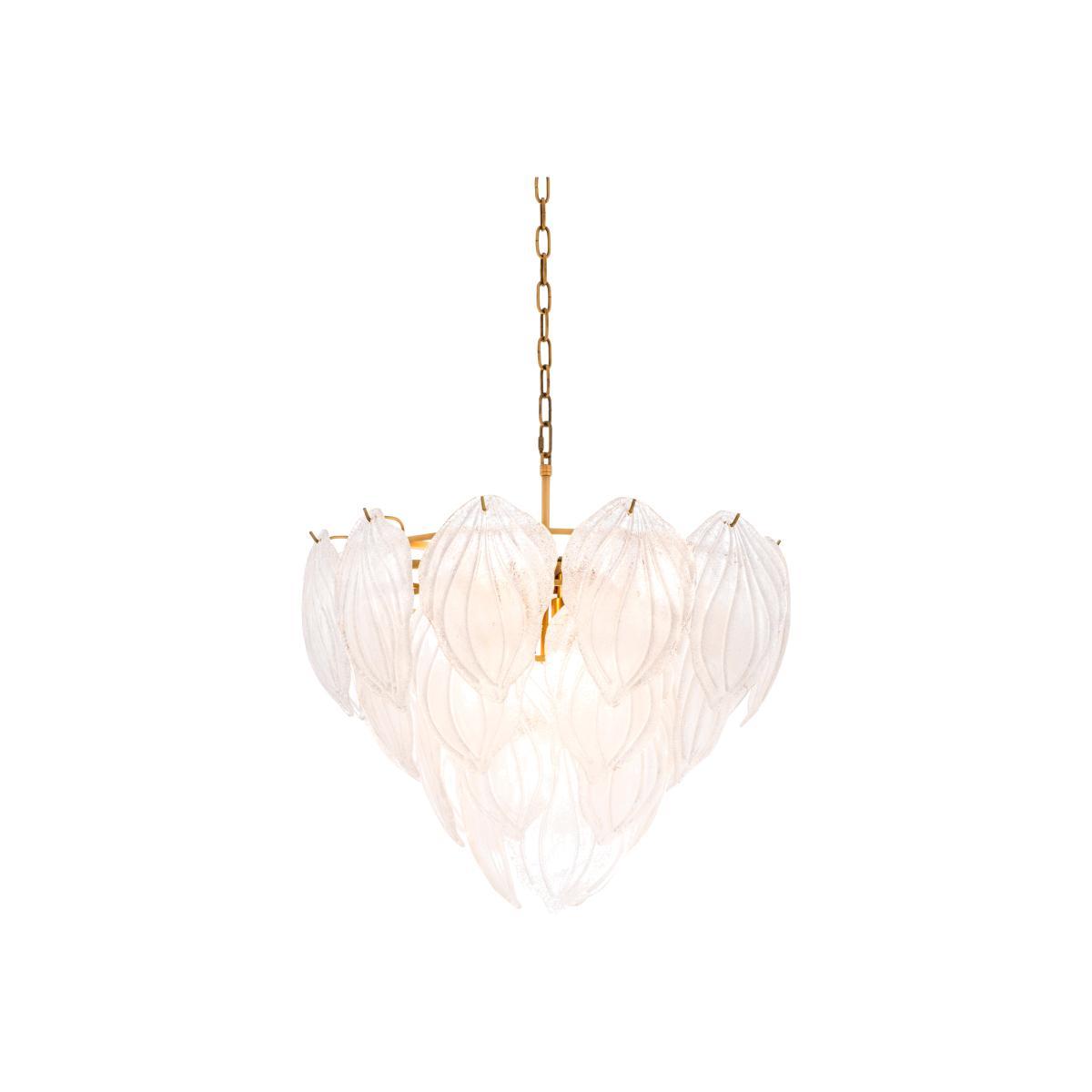 A series of hand blown leaves of frosted glass makes the Novida. Chandelier. A stunning focal point in your home décor. This inverted ceiling pendant looks amazing in your lounge or bedroom and really comes to life when it is illuminated. It contains 9 lamp holders and is suspended on a link chain in an antique brass finish. Downloads:. Item specification sheet. Assembly instruction. Finish: Antique brass finish | hand blown frosted glass. *Moot Trading Ltd is not a lender and acts only as an introducer. The credit product is provided by Klarna Bank AB (publ). Credit is only available to permanent UK residents aged 18 and over, subject to status. Terms and conditions apply. Please note that the following products are not regulated by the FCA: Pay in 30 days and Pay in 3 instalments. Read More.