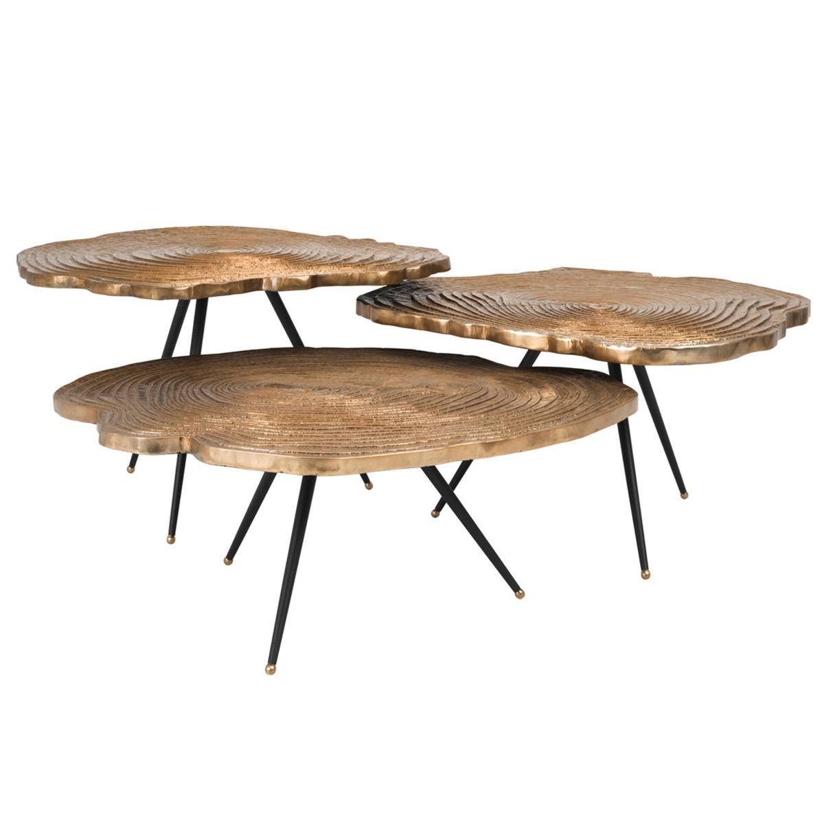 Eichholtz Quercus Coffee Table Brass Finish Set Of 3, Round, Gold | Barker & Stonehouse