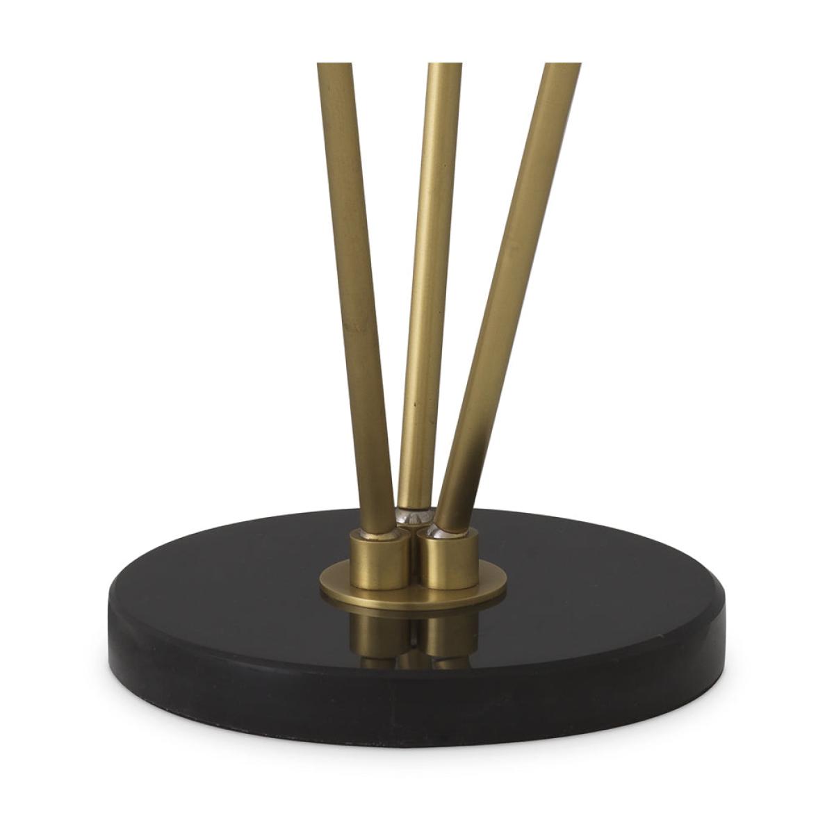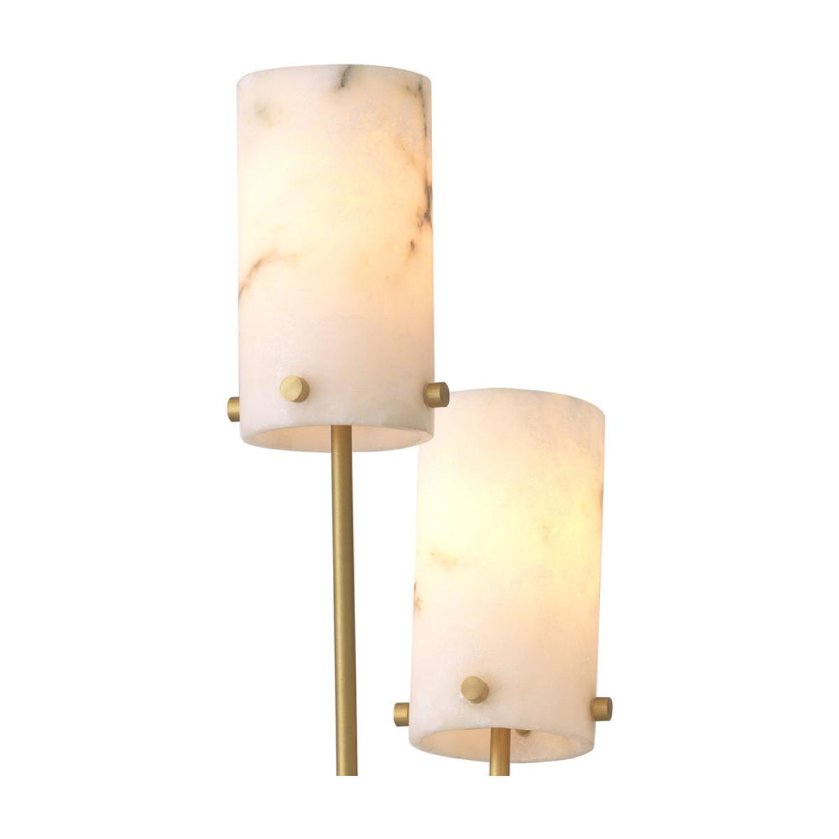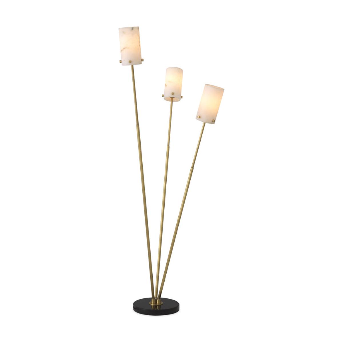 Floor Lamp Rodolpho stands for a homely light. As a supporting light, this 3-bulb luminaire conjures up a cosy ambience. Ideal for lighting up a dark corner in your living area or bedroom. The thre. View More. Floor Lamp Rodolpho stands for a homely light. As a supporting light, this 3-bulb luminaire conjures up a cosy ambience. Ideal for lighting up a dark corner in your living area or bedroom. The three lamp holders are fitted on antique brass stems that fan out from a round base of honed black marble. The tubular lampshades are made of translucent alabaster.