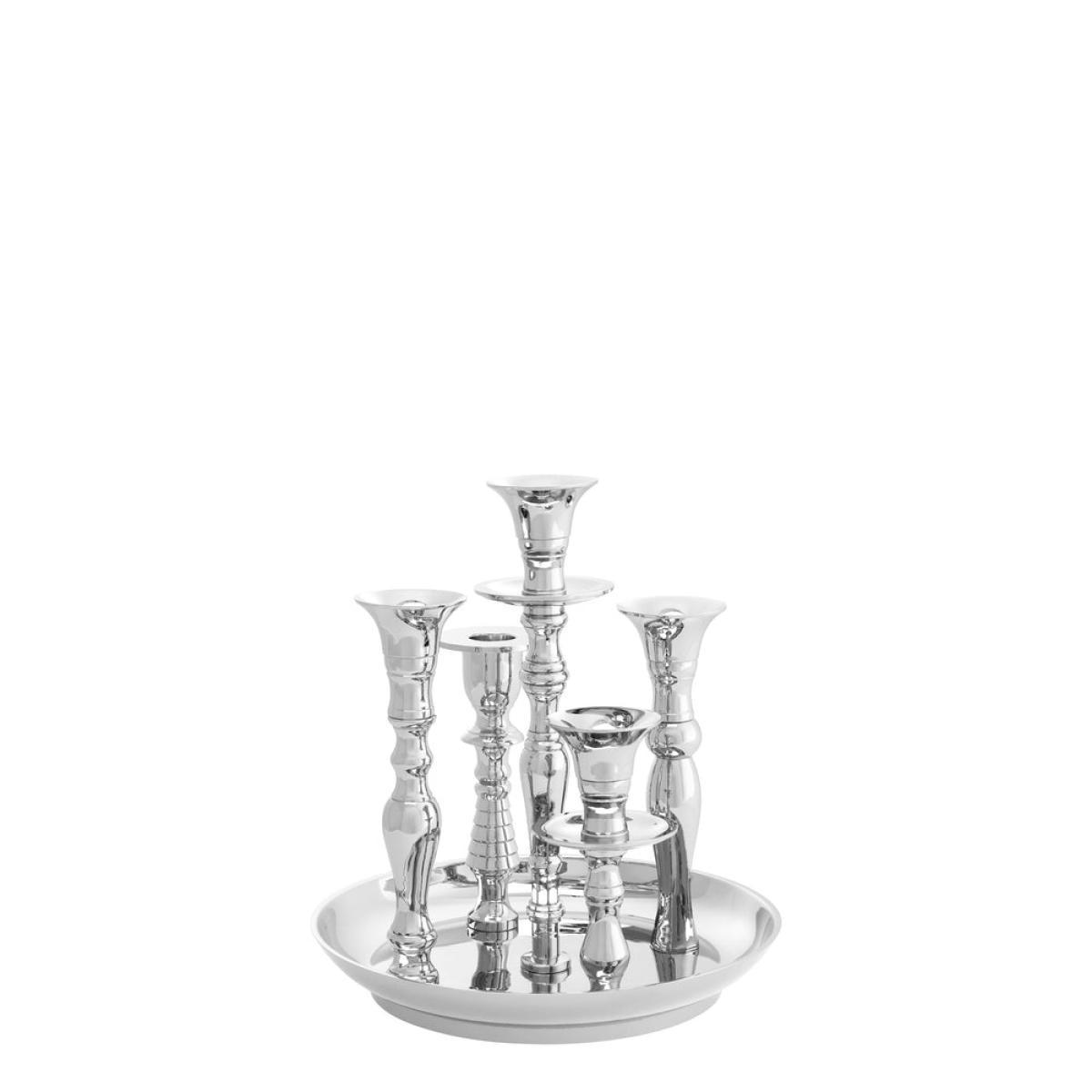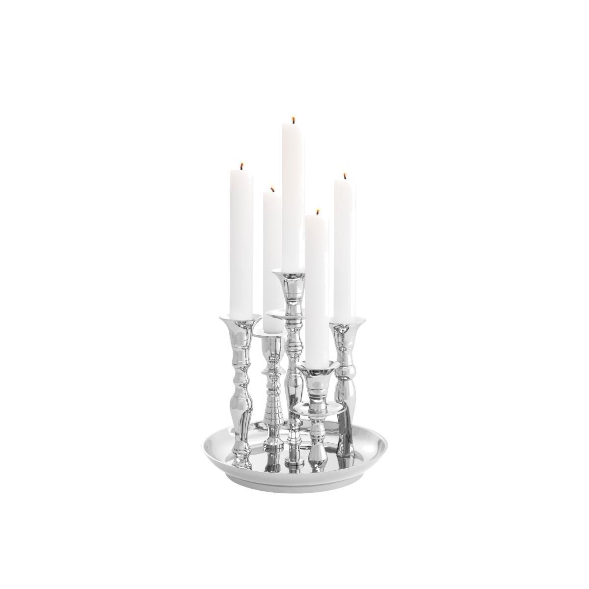 Mounted on a round tray, the nickel finish Rosella Candle Holder contains five processed candlesticks in different heights. This distinctive and posh candelabra can be used for various occasions and is sure to impress your guests. Downloads:. Item specification sheet. Finish: Nickel finish. *Moot Trading Ltd is not a lender and acts only as an introducer. The credit product is provided by Klarna Bank AB (publ). Credit is only available to permanent UK residents aged 18 and over, subject to status. Terms and conditions apply. Please note that the following products are not regulated by the FCA: Pay in 30 days and Pay in 3 instalments. Read More.