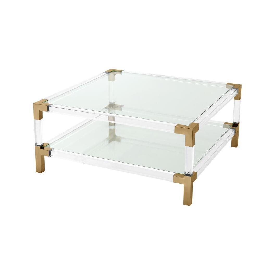 Coffee Table Royalton features two clear glass table surfaces that run parallel to clear acrylic rods. Corners and legs of brushed brass finish complete the modern aesthetic. CLEAN LINES WITH BAUHAUS ALLURE Enjoy the Bauhaus designer appeal of the Eichholtz Royalton series. Let these elements add a modern touch to your hallway, living room or bedroom. Combine with luxury lighting and accessories of the Eichholtz collection for a contemporary interior style. Downloads:. Item specification sheet. Assembly instruction. Finish: Clear acrylic | brushed brass finish. *Moot Trading Ltd is not a lender and acts only as an introducer. The credit product is provided by Klarna Bank AB (publ). Credit is only available to permanent UK residents aged 18 and over, subject to status. Terms and conditions apply. Please note that the following products are not regulated by the FCA: Pay in 30 days and Pay in 3 instalments. Read More.