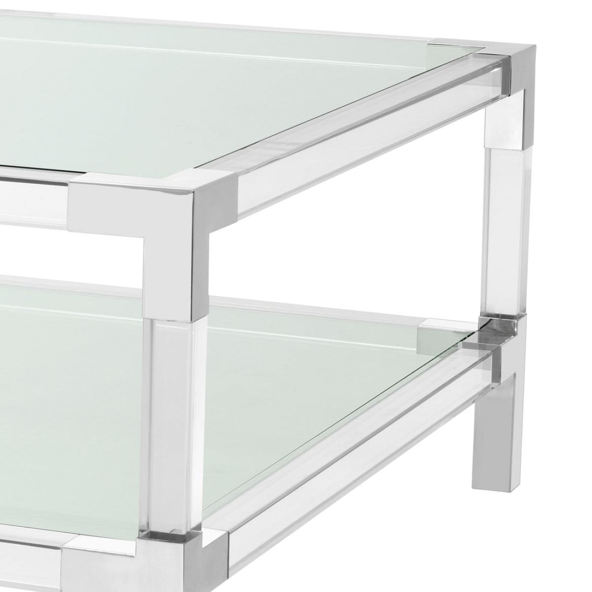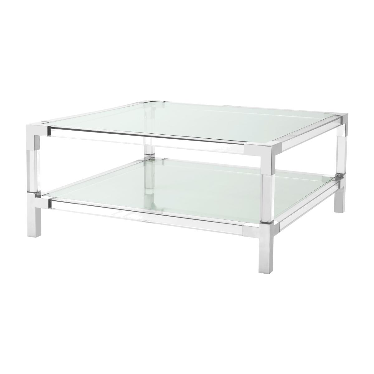 Coffee Table Royalton features two clear glass table surfaces that run parallel to clear acrylic rods. Corners and legs of polished stainless steel complete the modern aesthetic. CLEAN LINES WITH. View More. Coffee Table Royalton features two clear glass table surfaces that run parallel to clear acrylic rods. Corners and legs of polished stainless steel complete the modern aesthetic. CLEAN LINES WITH BAUHAUS ALLURE Enjoy the Bauhaus designer appeal of the Eichholtz Royalton series. Let these elements add a modern touch to your hallway, living room or bedroom. Combine with luxury lighting and accessories of the Eichholtz collection for a contemporary interior style. Outlet items may show some signs of minor cosmetic imperfections. Downloads:. Item specification sheet. Assembly instruction. Finish: Clear acrylic | polished stainless steel.