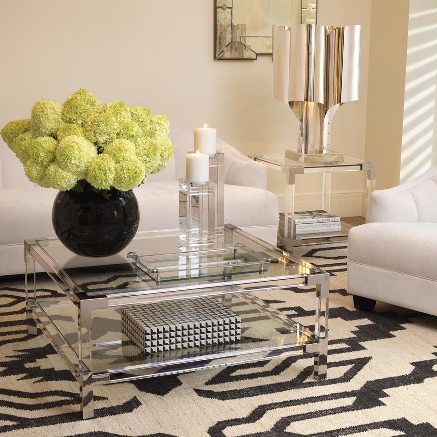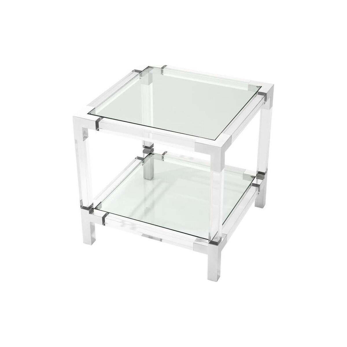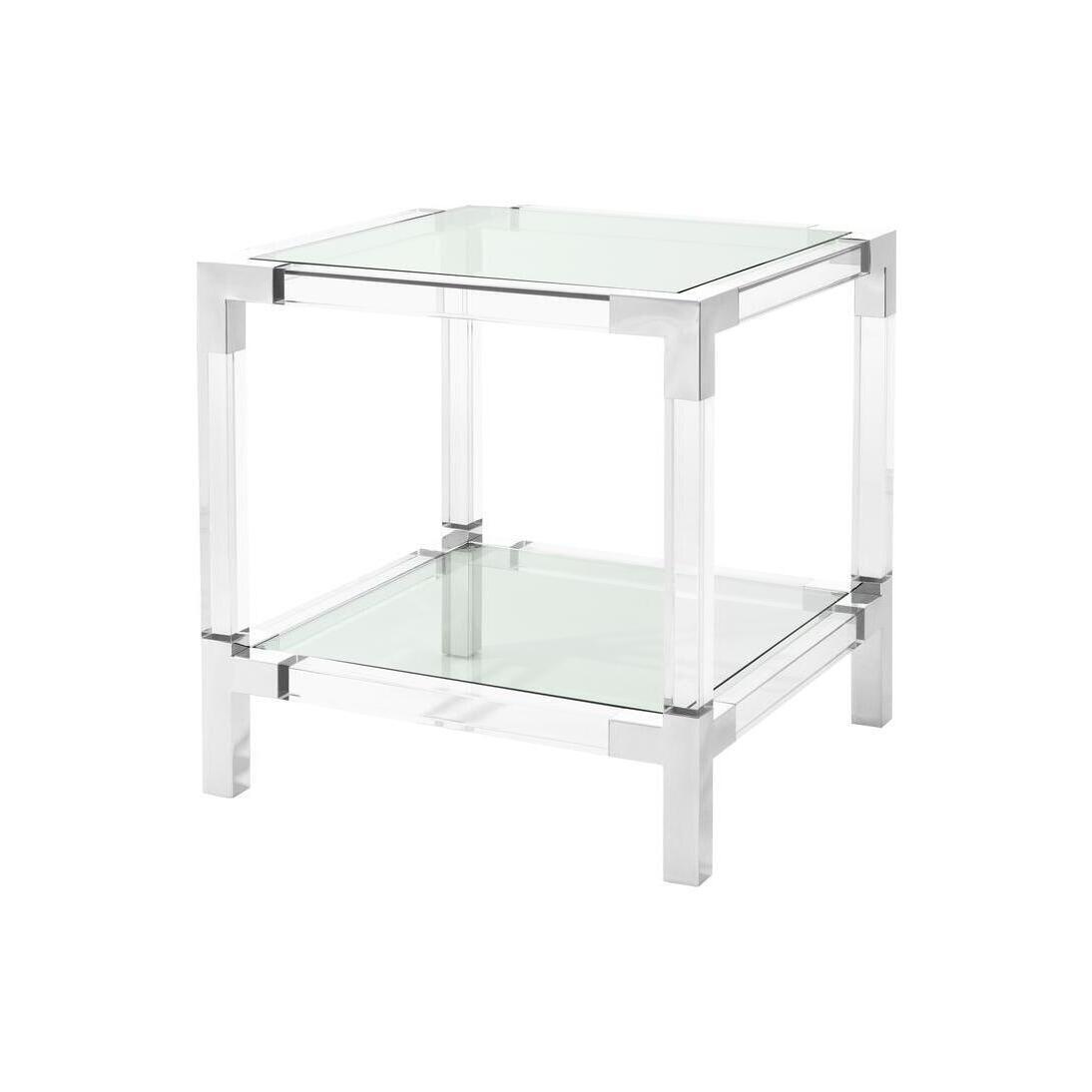 Side Table Royalton features two clear glass table surfaces that run parallel to clear acrylic rods. Corners and legs of polished stainless steel complete the modern aesthetic. CLEAN LINES WITH BAUHAUS ALLURE Enjoy the Bauhaus designer appeal of the Eichholtz Royalton series. Let these elements add a modern touch to your hallway, living room or bedroom. Combine with luxury lighting and accessories of the Eichholtz collection for a contemporary interior style. Downloads:. Item specification sheet. Assembly instruction. Finish: Clear acrylic | polished stainless steel. *Moot Trading Ltd is not a lender and acts only as an introducer. The credit product is provided by Klarna Bank AB (publ). Credit is only available to permanent UK residents aged 18 and over, subject to status. Terms and conditions apply. Please note that the following products are not regulated by the FCA: Pay in 30 days and Pay in 3 instalments. Read More.