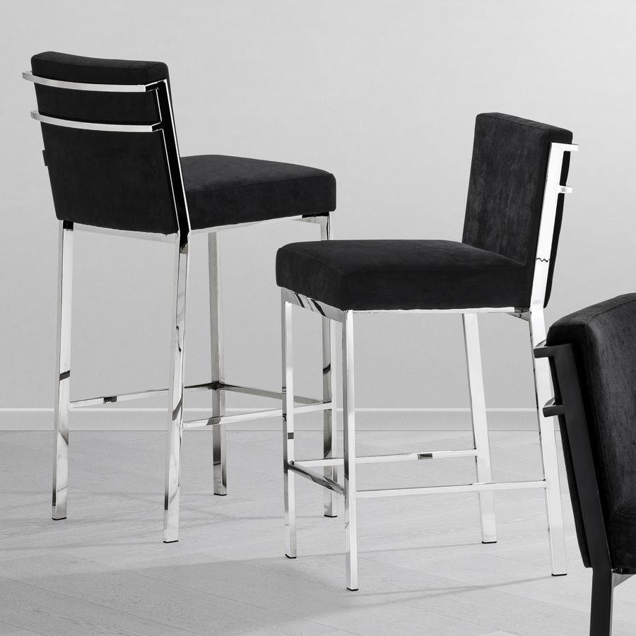 Offer an industrial twist to your casual or formal lounge or dining room interior with the luxury Scott Barstool. Its sturdy bronze finished frame with footrest adds versatile appeal to your urban modern décor while its black velvet seat offers a comfortable seating experience. Downloads:. Item specification sheet. Finish: Bronze finish | black velvet.