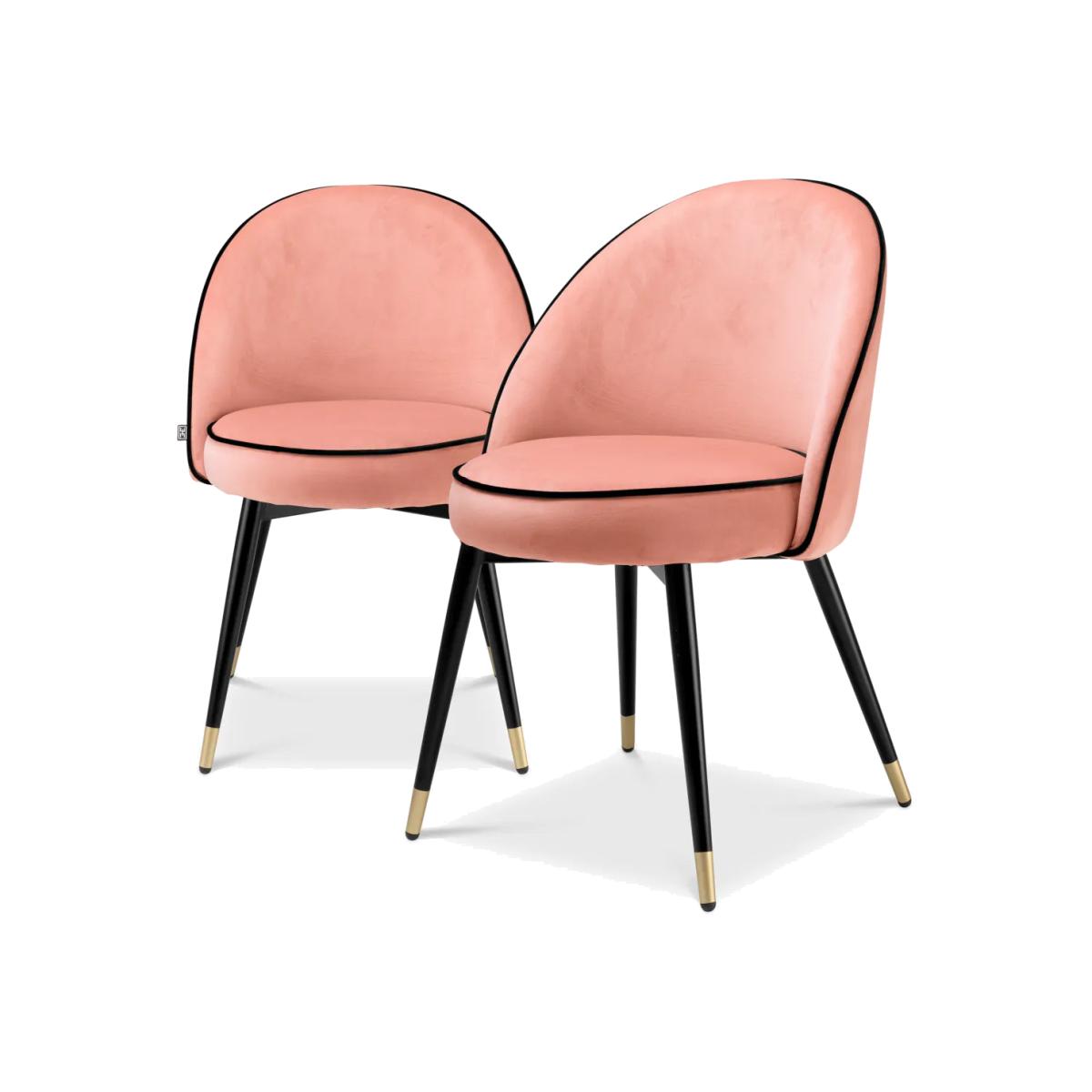 Add Mid-Century Modern appeal to your dining room or kitchen with this stylish set of 2 Cooper Dining Chairs. Each chair is characterised by a seating and backrest in savona nude velvet upholstery with black piping, tapered black legs and brass caps. Team up different chairs from this series for an opulent style!