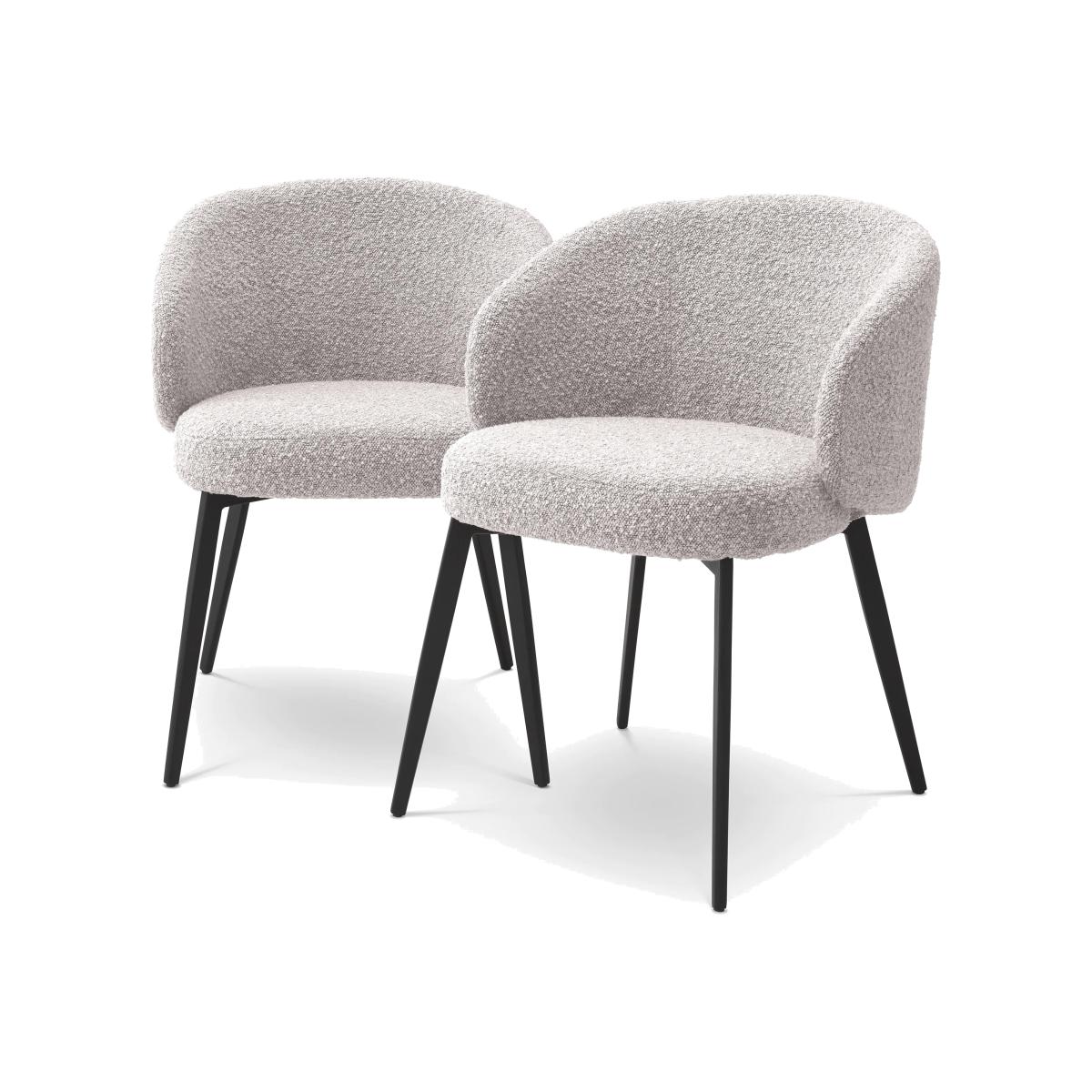 Eichholtz Set of 2 Lloyd Dining Chairs With Arm in Bouclé Grey