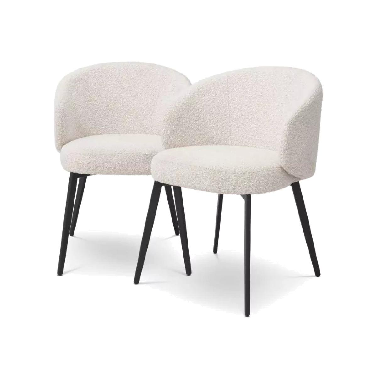 Crafted with attention to detail, Dining Chair Lloyd provides a stylish and comfortable seat. With spider-like black legs and a Bouclé cream upholstery, this dining chair with arms is suitable for everyday use. The design is elegantly simple, with a curved, padded backrest offering pleasant support to your back and arms. Dining Chair Lloyd is supplied in sets of 2. Dimensions: H:79cm x W:57cm x D:58cm