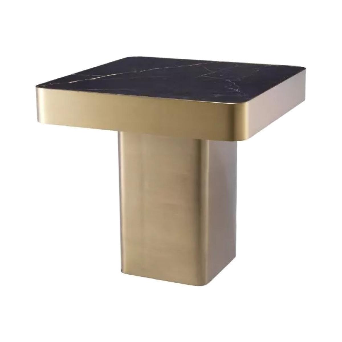 Round out your interior design with the sophisticated Luxus Side Table. This striking end table with rounded corners is a fine companion with Art Deco figures. It is characterised by a sturdy base with brushed brass finish and a black ceramic tabletop with marble look design with a brushed brass rim. To create a wonderful set that offers extra table space, you can use it as a nesting table with the Luxus Coffee Table. Dimensions: 50 x 50 x H. 47,5 cm