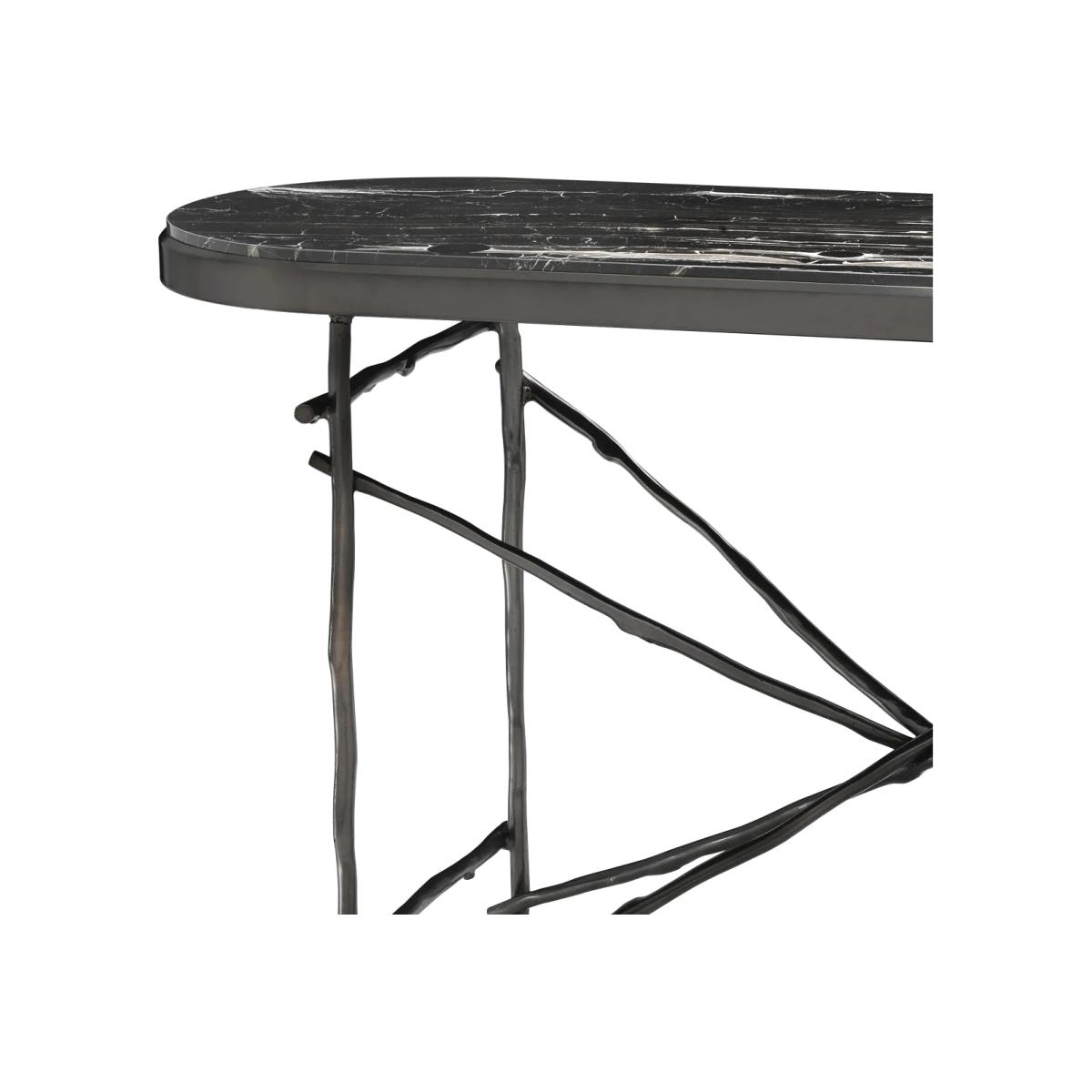Conjure up a royal atmosphere in your home with the first-rate Tomasso Console Table. Featuring bronze finish legs in the shape of branches and a chic capsule-shaped tabletop of genuine Italian marble, this stunning furniture piece is a perfect fit for classic and eclectic interiors. Finish/Colour: Bronze, Gunmetal
