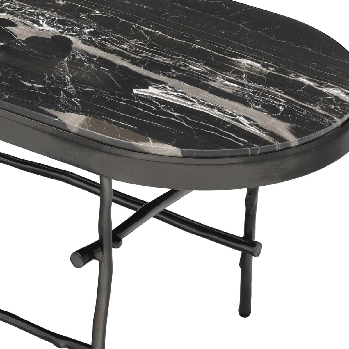 Conjure up a royal atmosphere in your home with the first-rate Tomasso Coffee Table. Featuring dark bronze finish legs in the shape of branches and a chic capsule-shaped tabletop of genuine Italian marble, this stunning furniture piece is a perfect fit for classic and eclectic interiors.