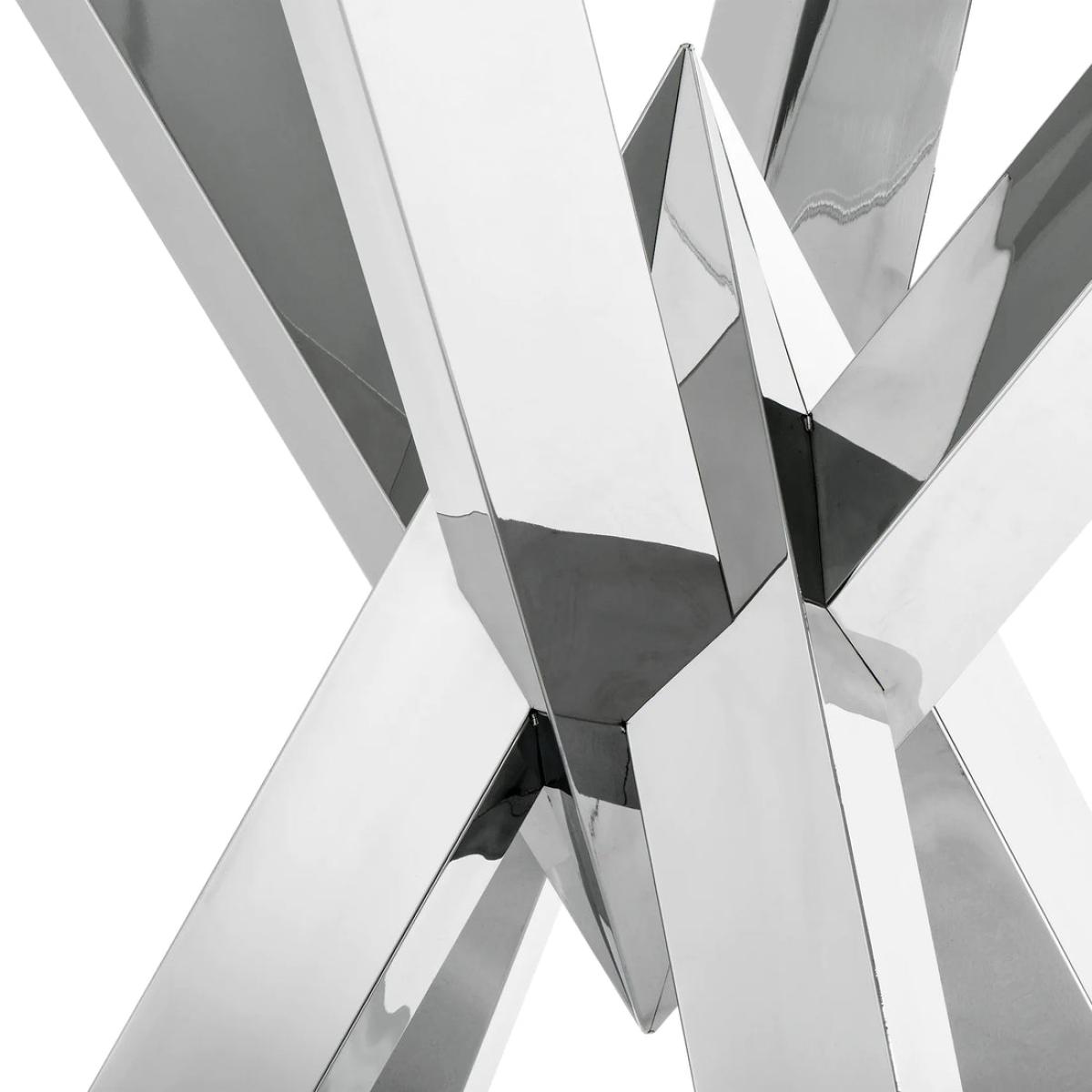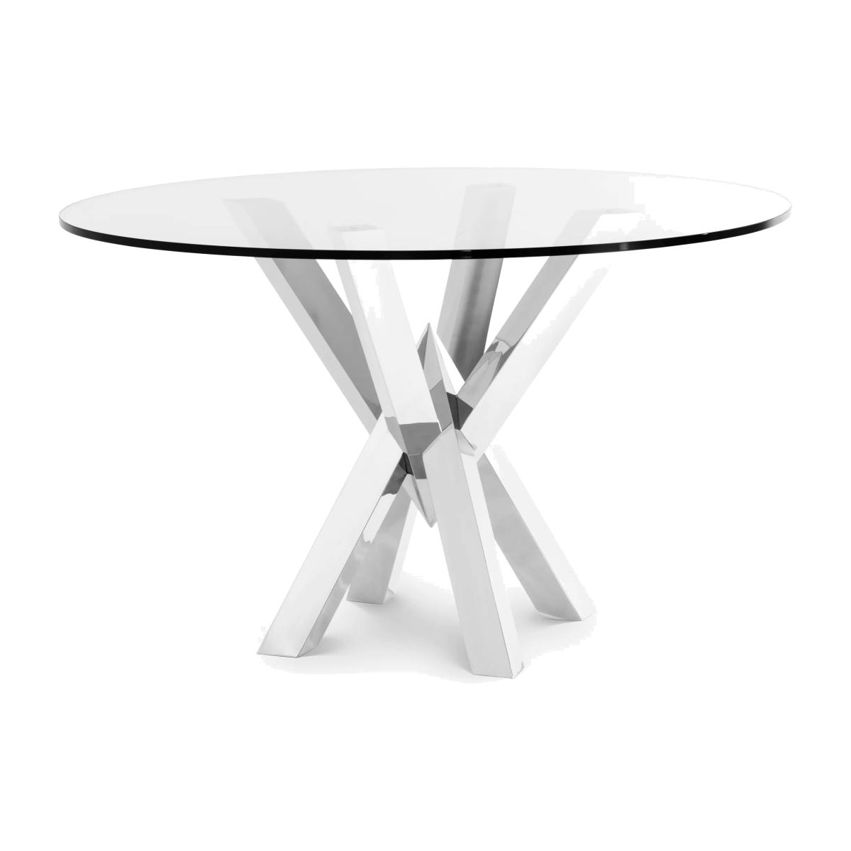 Invite the striking serenity and metallic modernity of the luxury Triumph Dining Table into your home. Combining a highly polished stainless steel base with a smooth glass tabletop, it is perfect for contemporary interiors. Dimensions: W:125 x H:75 x D:125cm Materials: Stainless Steel, Glass Assembly Required: Yes Care Instructions:Wipe with a clean, damp cloth. Dry with a clean, soft cloth. No harsh abrasives or cleaners Product Specification Sheet Assembly Instructions
