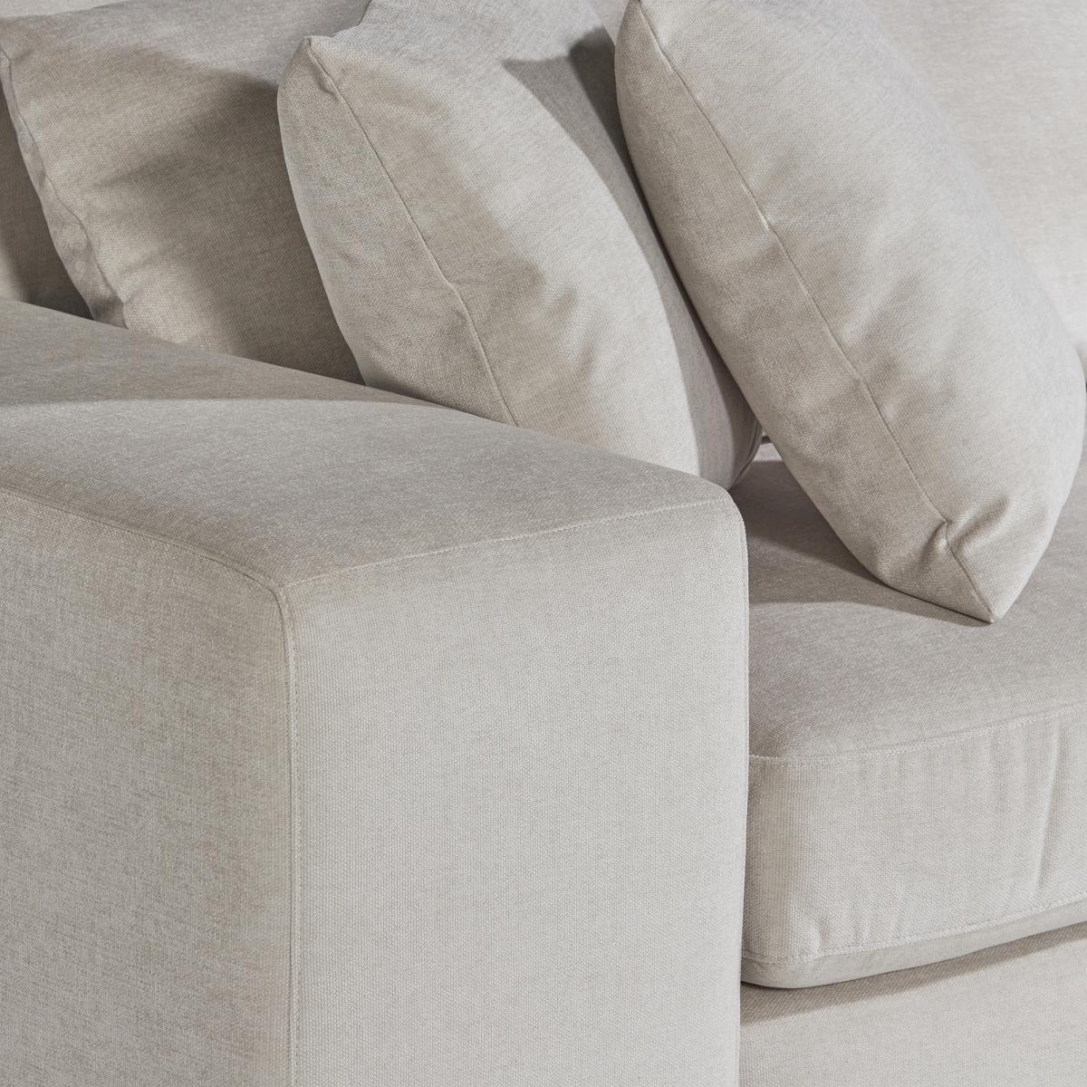 I love this corner sofa for its clean, contemporary look and versatile white fabric, making it a stylish anchor in modern or minimalist interiors. It's ideal for larger living spaces and works well in open-plan setups, where its ample seating creates a welcoming feel. To style it effectively, consider layering with textured cushions and throws in neutral or muted tones to add warmth and visual interest. Pairing with a contemporary coffee table and simple, understated accessories will help highlight its sleek silhouette, while a subtle area rug underneath can ground the space. This piece is quite versatile, so it can complement both chic urban apartments and more relaxed, lounge-style interiors.