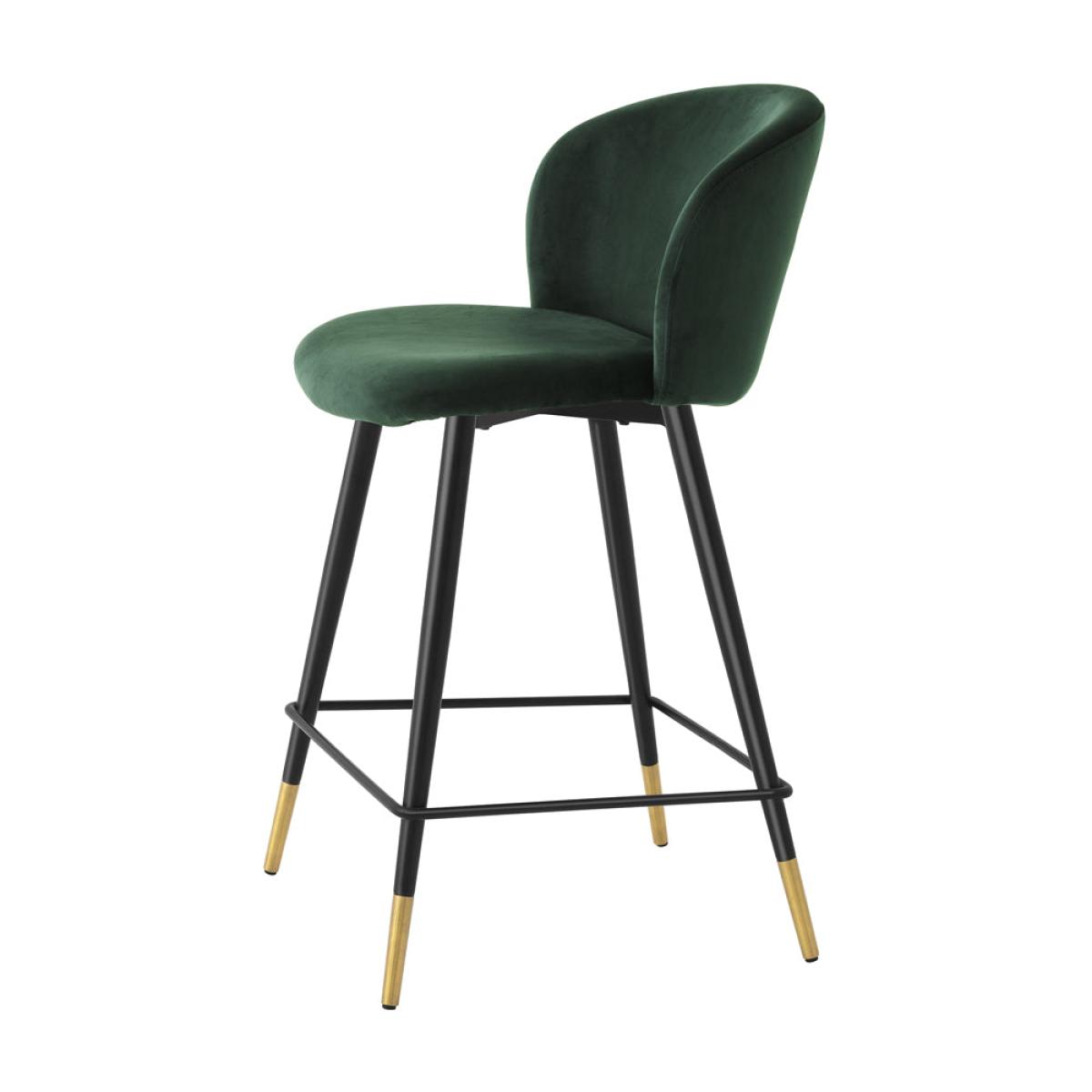 The vintage-inspired Volante Counter Stools are perfect for both residential and commercial use. A beautiful Cambon black upholstery covers the smoothly curved seats. High backrests provide ample b. View More. The vintage-inspired Volante Counter Stools are perfect for both residential and commercial use. A beautiful Cambon black upholstery covers the smoothly curved seats. High backrests provide ample body support, while footrests prevent feet from dangling. Completed with black tapered legs and gold finish caps, these lovely counter stools will give any décor a retro look and feel.
