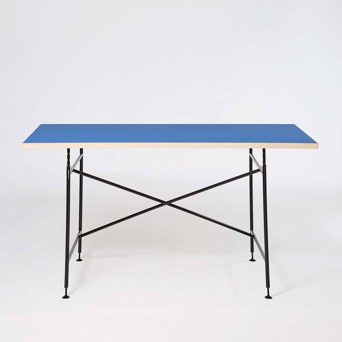 Designed by the German architect Egon Eiermann in 1953, the 160cm Eiermann 1 Desk in a blue and black finish is expertly crafted by Richard Lampert. Showcasing a pared-back form and expertly made-to-order in Germany, the design classic features a height-adjustable frame constructed from black-painted metal. Finished with an oak-edged blue linoleum table top, the Eiermann 1 Desk is used by architects across the globe for its adaptability and refined finish. One of Germany's most renowned architects and designers, Egon Eiermann had a simple, minimalistic approach to design. Inspired by Bauhaus architects and designers such as Mies van der Rohe, Le Corbusier and Walter Gropius, his unique creations are as functional as they are beautiful.