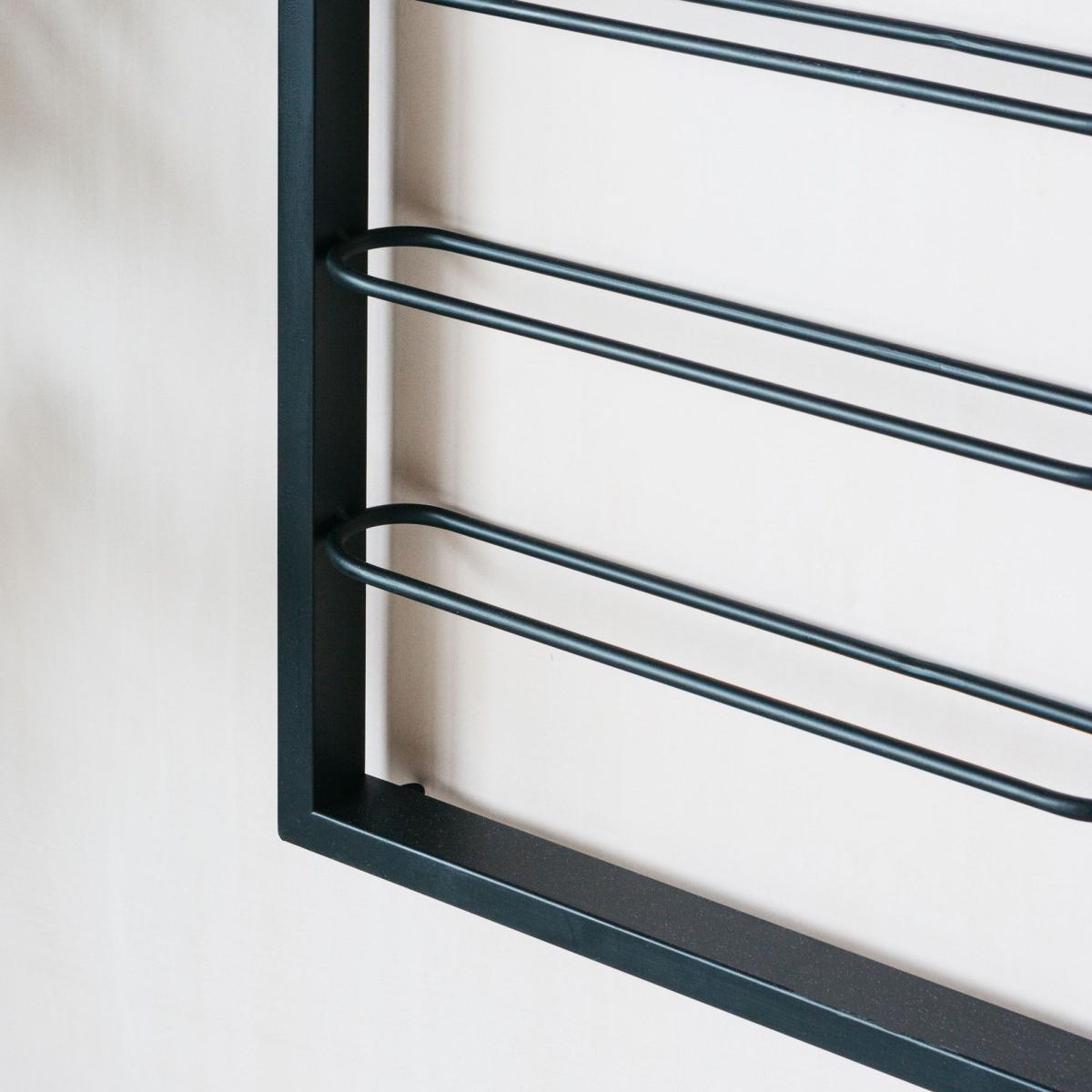 I love this black wine rack for its sleek, minimal design - it’s an excellent piece for adding organisation without clutter. Its pared-back aesthetic makes it versatile enough to suit modern, Scandinavian, or industrial interiors, especially when paired with matte black fixtures or natural wood accents. Practical styling tips include placing it in an open-plan kitchen or dining area to keep your wine collection within easy reach, or leaning it against a wall as a decorative feature. To enhance its visual appeal, consider pairing it with glassware or wine accessories on neighbouring shelves, or contrasting it with lighter-coloured walls and furniture for a striking look.