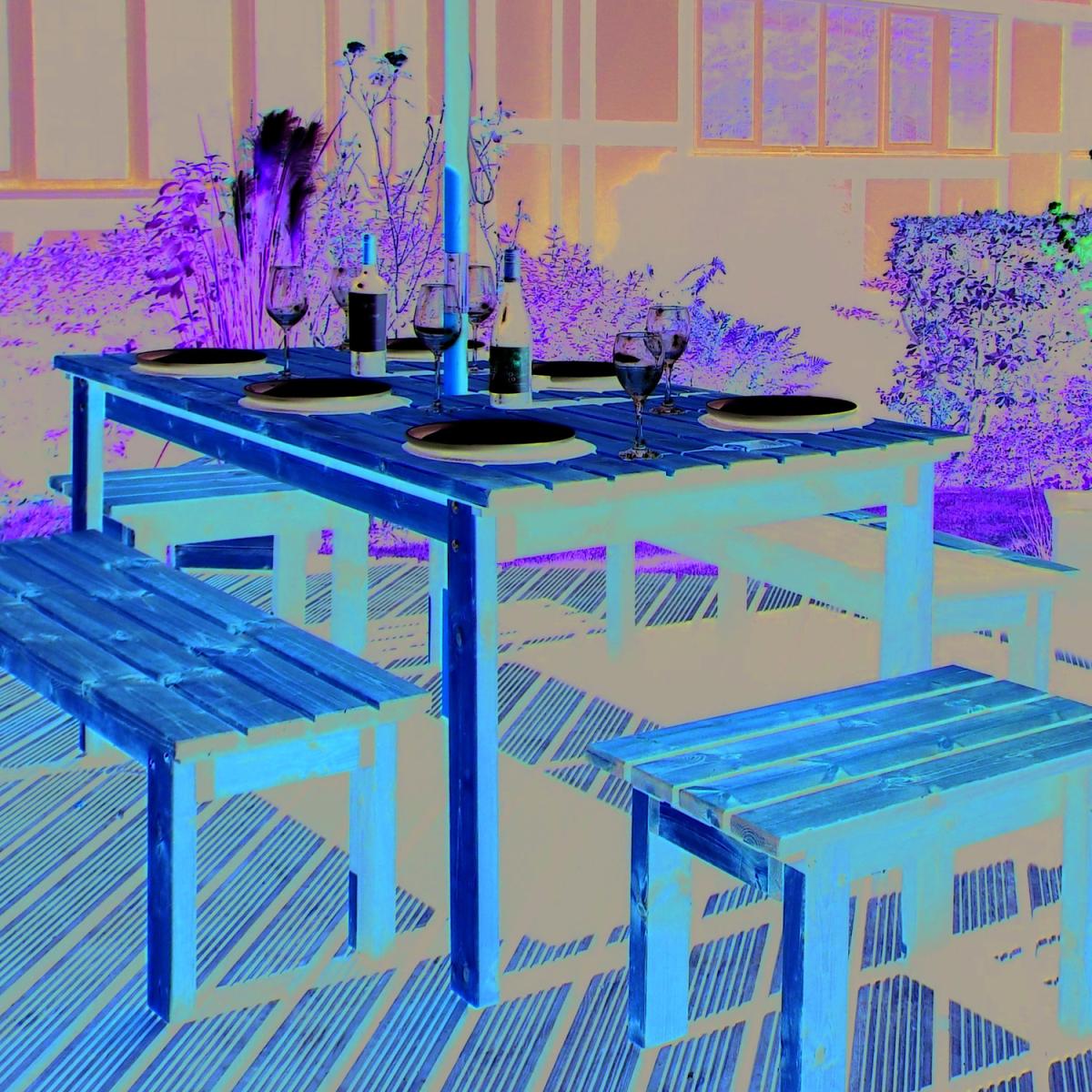 Charles Taylor Solid Wood Outdoor Eight Seater Table Set (Forms). This is constructed at our factory in the UK and manufactured from Solid Scandinavian Redwood. As the name implies, this timber grows in a cold climate. The slow growth associated with the low temperature produces a much denser, more robust wood which is perfect for outdoor use.*Please note this comes with form benches, not accent chairs*
