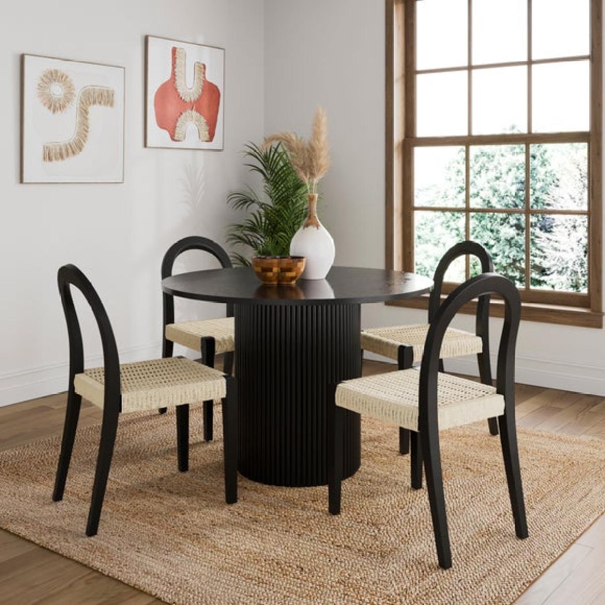 * Woodening dining chair * Curved back * Woven seat This dining chair brings a refined, natural charm to your dining space with its beautifully curved backrest and hand-woven seat. Designed for both comfort and style, the gently rounded back offers supportive seating, while the woven detail adds texture and a touch of artisanal character. Its clean, minimalist frame makes it a versatile choice that pairs effortlessly with a variety of dining tables and interior styles, from rustic to contemporary.