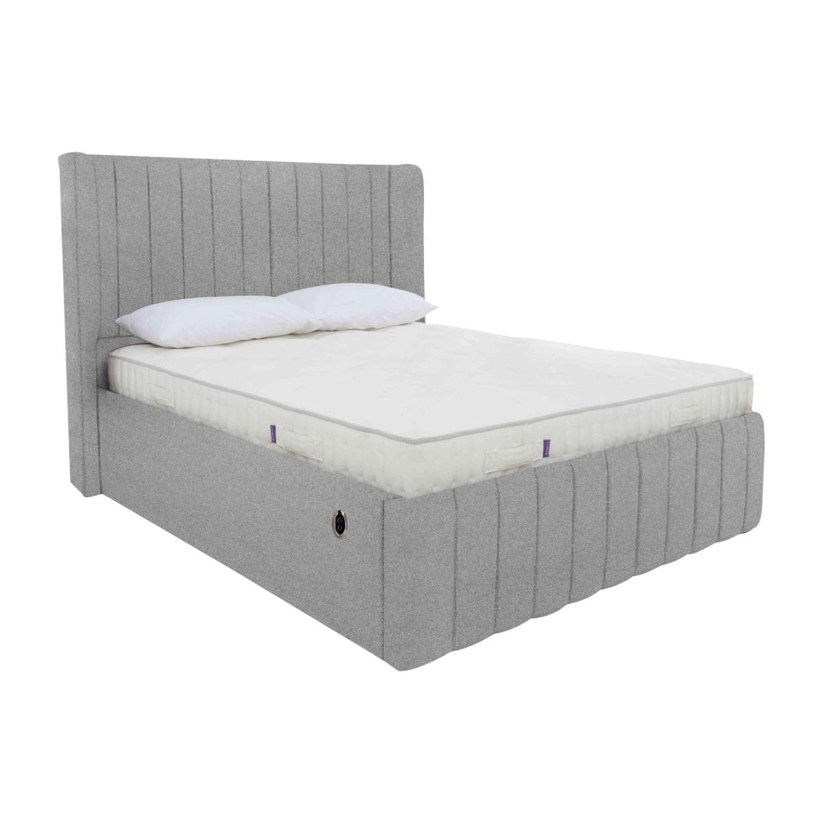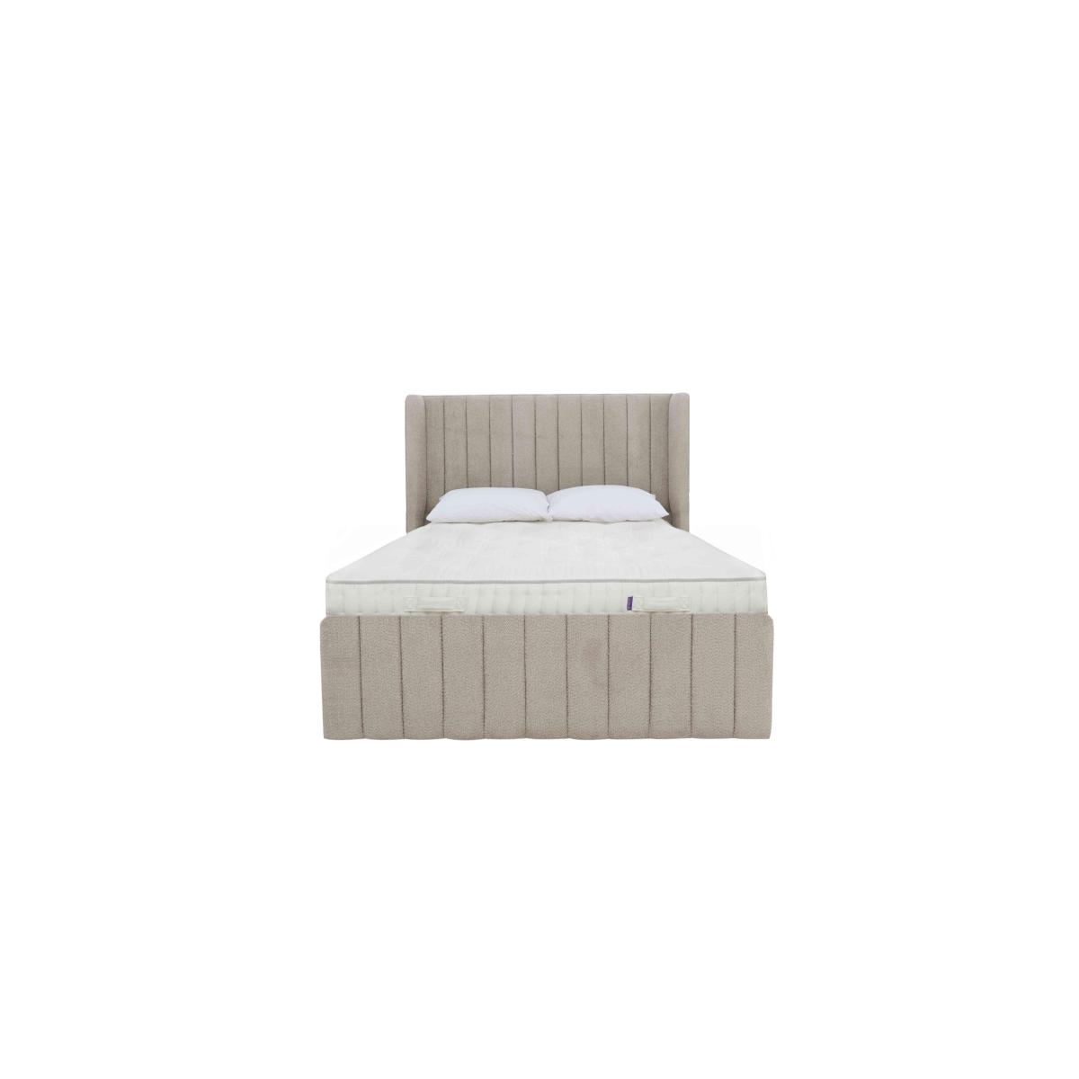 There’s nothing quite like a luxury bed frame for turning a good night's rest into a sumptuous sleep experience. Our exclusive handcrafted Eira collection offers a beautifully curated selection of bed frames with optional high foot ends – for that classic glamorous bed frame look – and underbed ottoman storage space, so useful for keeping extra pillows and duvets out of sight and dust-free. The upholstery is embellished with contemporary fluting and is available in an extensive selection of high-quality fabrics. In double, king and super king sizes and only at Furniture Village. Need space to hide away bedding? This electric assisted ottoman bed frame offers plenty of easy access storage with high-end looks, perfect for modern bedrooms. Why you'll love it Sumptuously finished statement ottoman bed frame. Elegant and contemporary. Super-spacious underbed ottoman storage compartment. Electric powered lift mechanism for easy access. The tall winged headboard and high foot end are sumptuously cushioned. Luxurious upholstery features precisely tailored fluting. Available in a wide choice of on-trend fabrics and colours. Handcrafted and only available at Furniture Village. This high foot end ottoman bed frame is part of the Eira bed frame range. What you need to know Mattress sold separately. Base type: beech slats. Ottoman opens at foot end. Mattress weight limit: double 90 kg, king and super king 100kg. Please take care when opening and closing. Centre rail legs must always be vertical and fully adjusted to support the mattress when in use. Some fabrics can show wear on areas of more use or in direct sunlight. Clean weekly using a soft brush or vacuum with the curtain attachment. Deal with any spills promptly. Professional cleaning advised for oil- and grease-based stains.