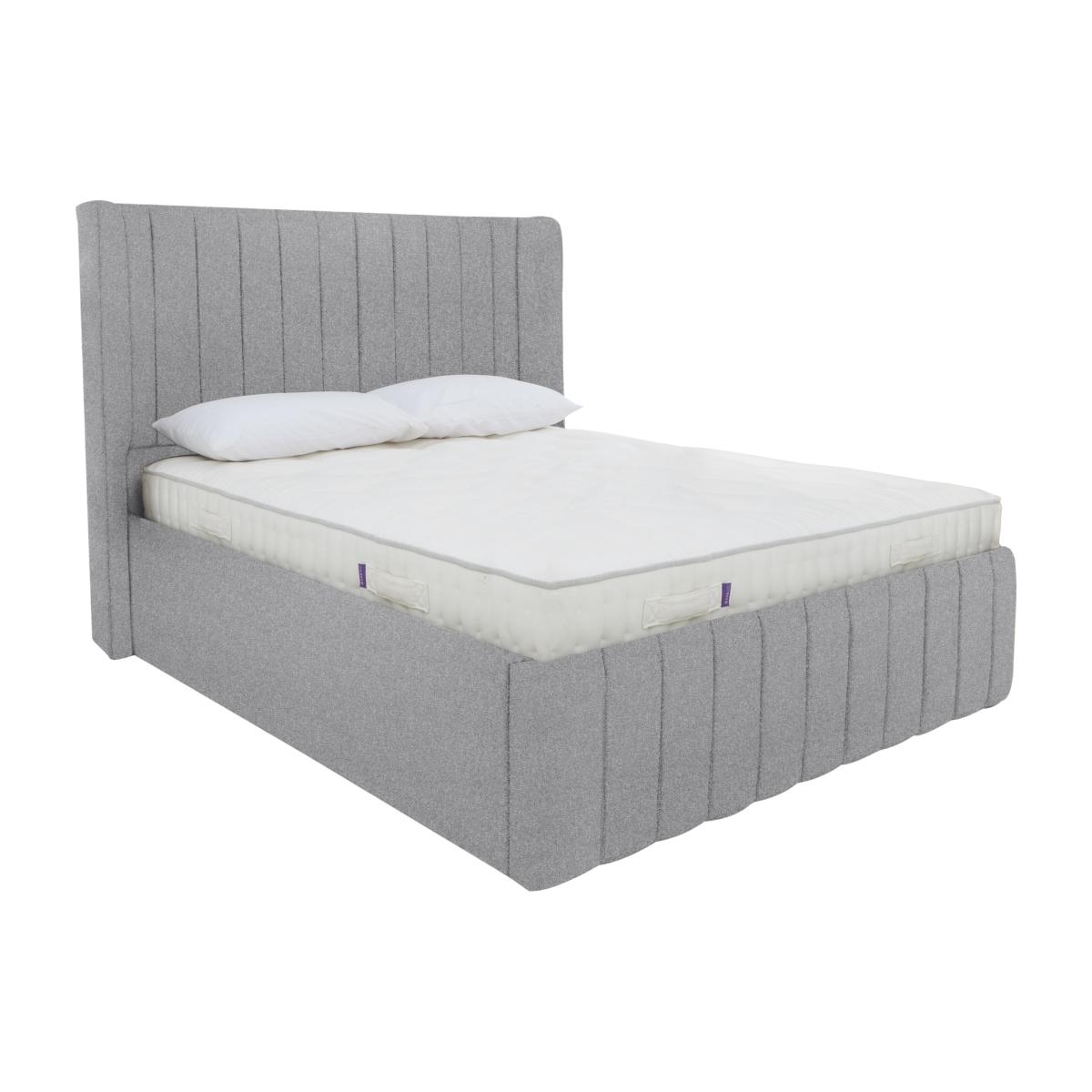 There’s nothing quite like a luxury bed frame for turning a good night's rest into a sumptuous sleep experience. Our exclusive handcrafted Eira collection offers a beautifully curated selection of bed frames with optional high foot ends – for that classic glamorous bed frame look – and underbed ottoman storage space, so useful for keeping extra pillows and duvets out of sight and dust-free. The upholstery is embellished with contemporary fluting and is available in an extensive selection of high-quality fabrics. In double, king and super king sizes and only at Furniture Village. There’s no compromise between luxury style and everyday practicality with this ottoman bed frame. Handcrafted for Furniture Village. Why you'll love it Enjoy luxury style plus built-in storage with this low foot end ottoman bed frame. Elegant and contemporary. Super-spacious underbed ottoman storage compartment. Stylish tall winged headboard is sumptuously cushioned. Luxurious upholstery features precisely tailored fluting. Available in a wide choice of on-trend fabrics and colours. In double, king and super king sizes. Handcrafted and only available at Furniture Village. This low foot end ottoman bed frame is part of the Eira bed frame range. What you need to know Mattress sold separately. Base type: beech slats. Ottoman opens at the foot end. Mattress weight limit: double 90 kg, king and super king 100kg. Please take care when opening and closing. Centre rail legs must always be vertical and fully adjusted to support the mattress when in use. Some fabrics can show wear on areas of more use or in direct sunlight. Clean regularly using a soft brush or vacuum with the curtain attachment. Deal with any spills promptly. Professional cleaning advised for oil- and grease-based stains.