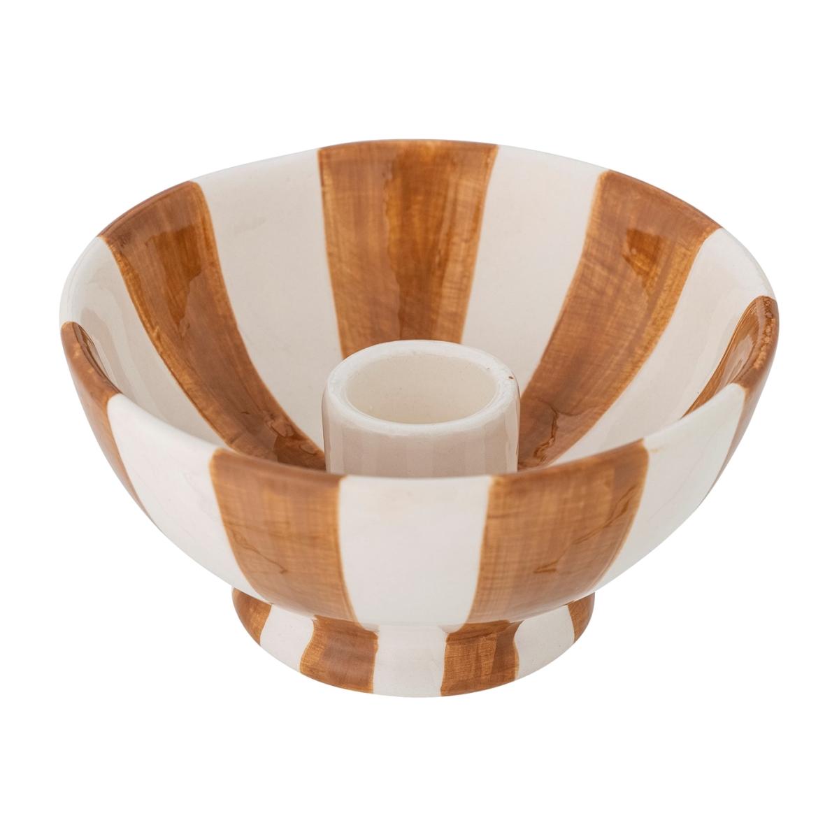 I love this stoneware candle holder for its bold yet simple design, which can add a touch of warmth and texture to a variety of interiors. Its striped pattern and earthy tones make it particularly well-suited to neutral, rustic, or coastal schemes, but it can also serve as a striking contrast in more minimal or modern spaces. Practical styling tips include grouping it with other natural materials like wood or wicker, or standing it alone as a statement piece on a mantle, side table, or centrepiece. To maximise its visual impact, consider pairing it with taller candles or small greenery accents for layered, curated vignettes.