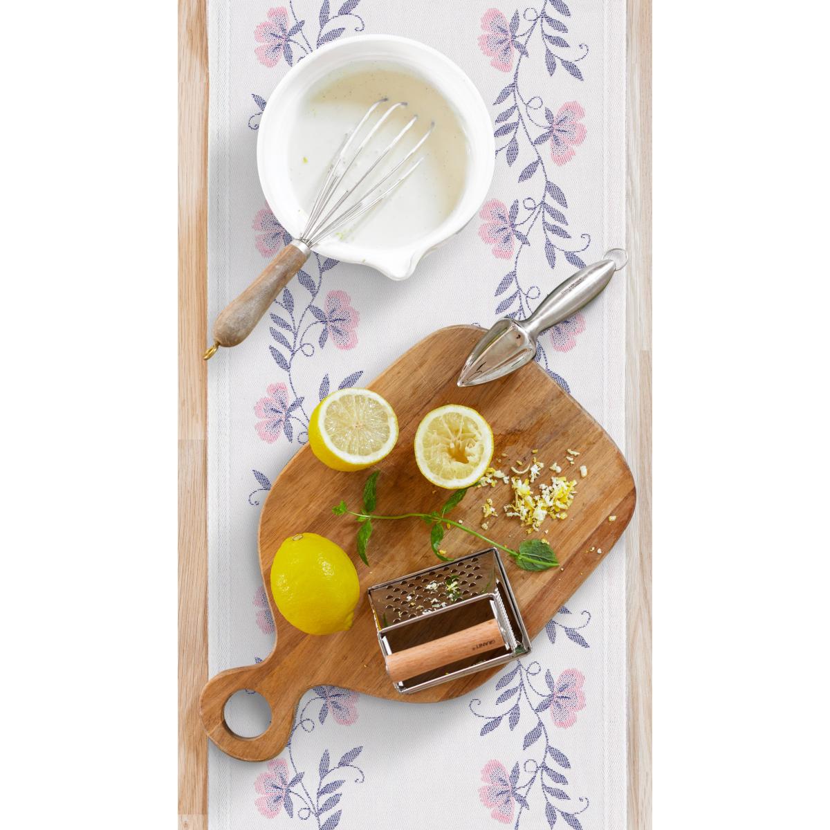 This runner is a versatile choice that adds a subtle touch of colour and pattern to both traditional and contemporary interiors. I love how its delicate embroidery and soft pastel tones can soften a minimalist scheme or complement vintage-inspired décor. It works particularly well on neutral-toned dining tables or sideboards, and can be layered with other textiles for a cosy, layered look. Practical styling tips include pairing it with mismatched ceramics or quirky accessories to create a relaxed, eclectic vibe, or using it as a base for a simple floral arrangement to highlight its embroidery detail. Its refined yet understated aesthetic makes it a charming addition to kitchens, dining rooms, or even sitting areas where a dash of softness is desired.