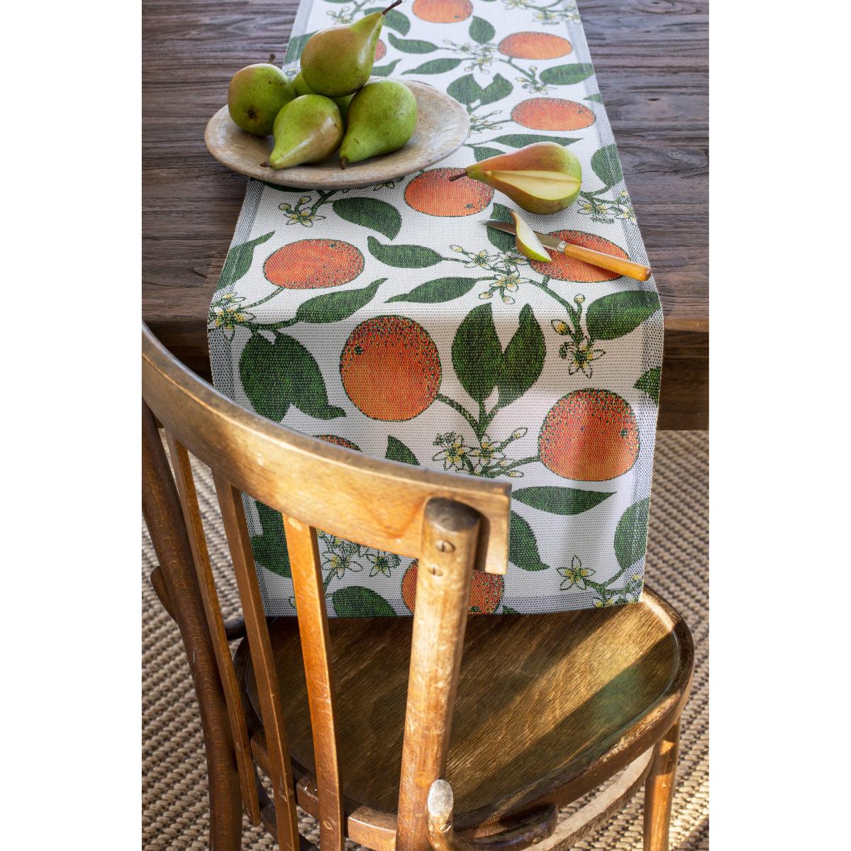 This table runner is a great way to introduce colour and pattern into a kitchen or dining space without overwhelming it. I love how the citrus print adds a fresh, Scandinavian-inspired feel that pairs beautifully with both neutral and more colourful tableware. It works particularly well in relaxed, casual settings or in interiors that blend vintage charm with modern simplicity. For styling tips, consider pairing it with simple white crockery and contrasting textiles such as napkins or placemats in earthy tones. To keep the look balanced, opt for natural wood or stone surfaces, allowing the vibrant oranges and foliage to really stand out. Perfect for bringing a touch of nature indoors while remaining functional and stylish.