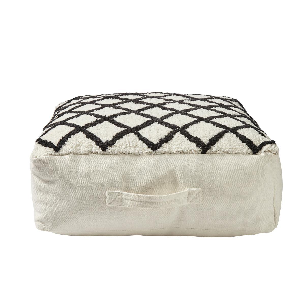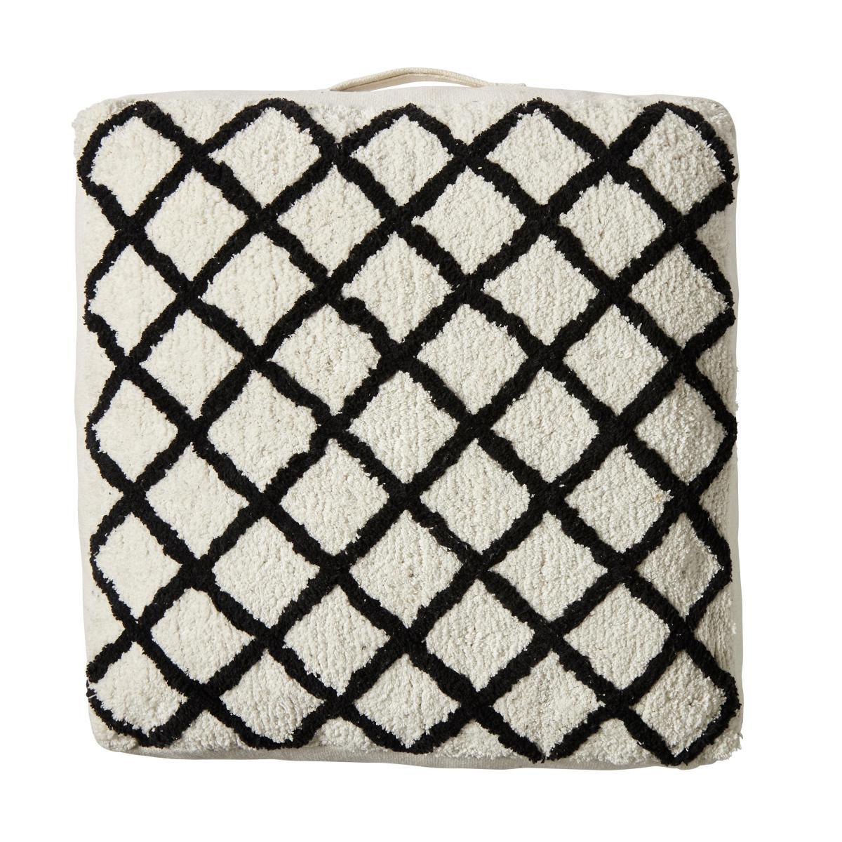 Fully tufted on top with a geometric pattern, the Ekon Floor Cushion is the perfect way to add additional seating to your home, as well as a welcoming touch to your living areas. Filled with recycled fibre, the piece is both plump and attractive, with a monochrome colourway that will look stylish in any home.