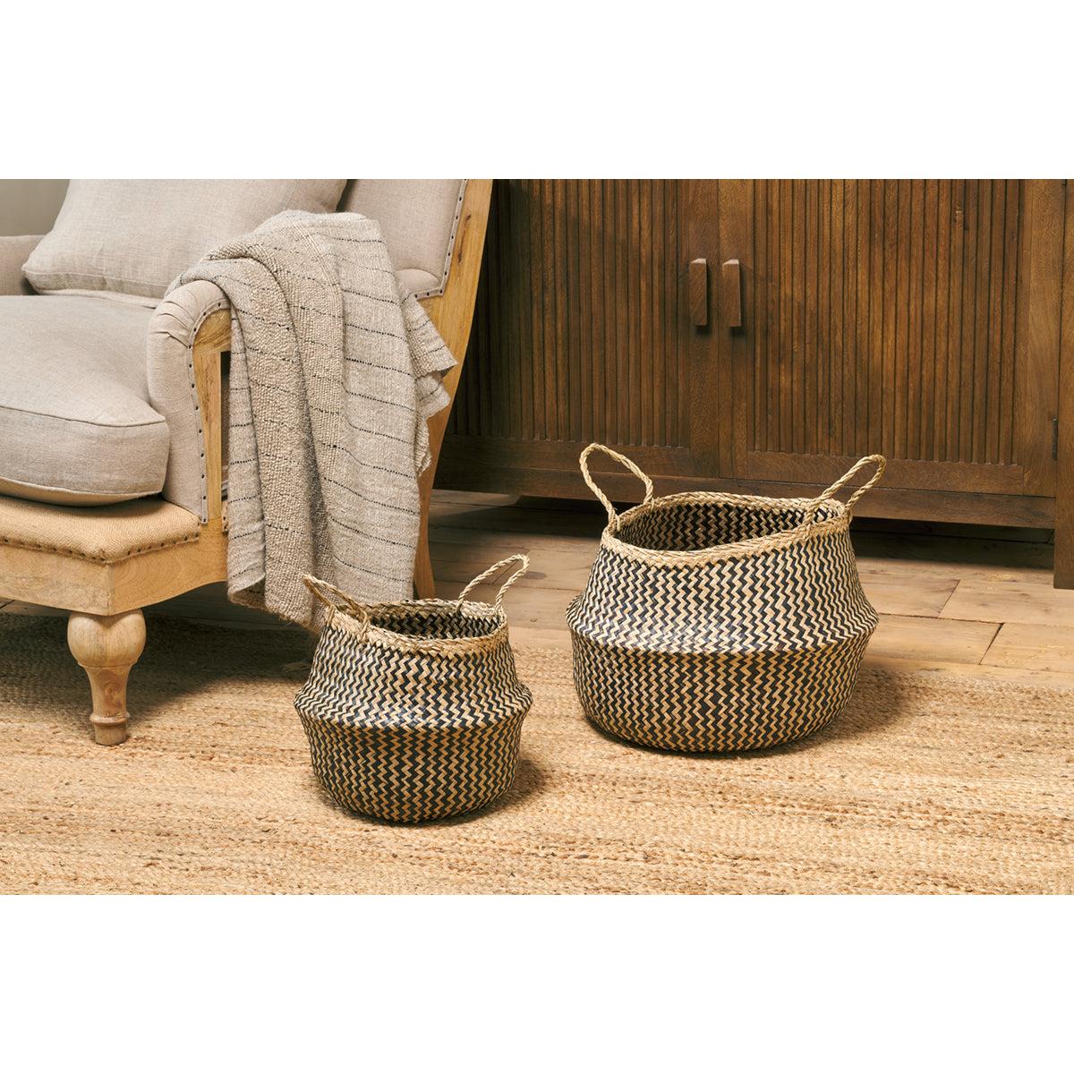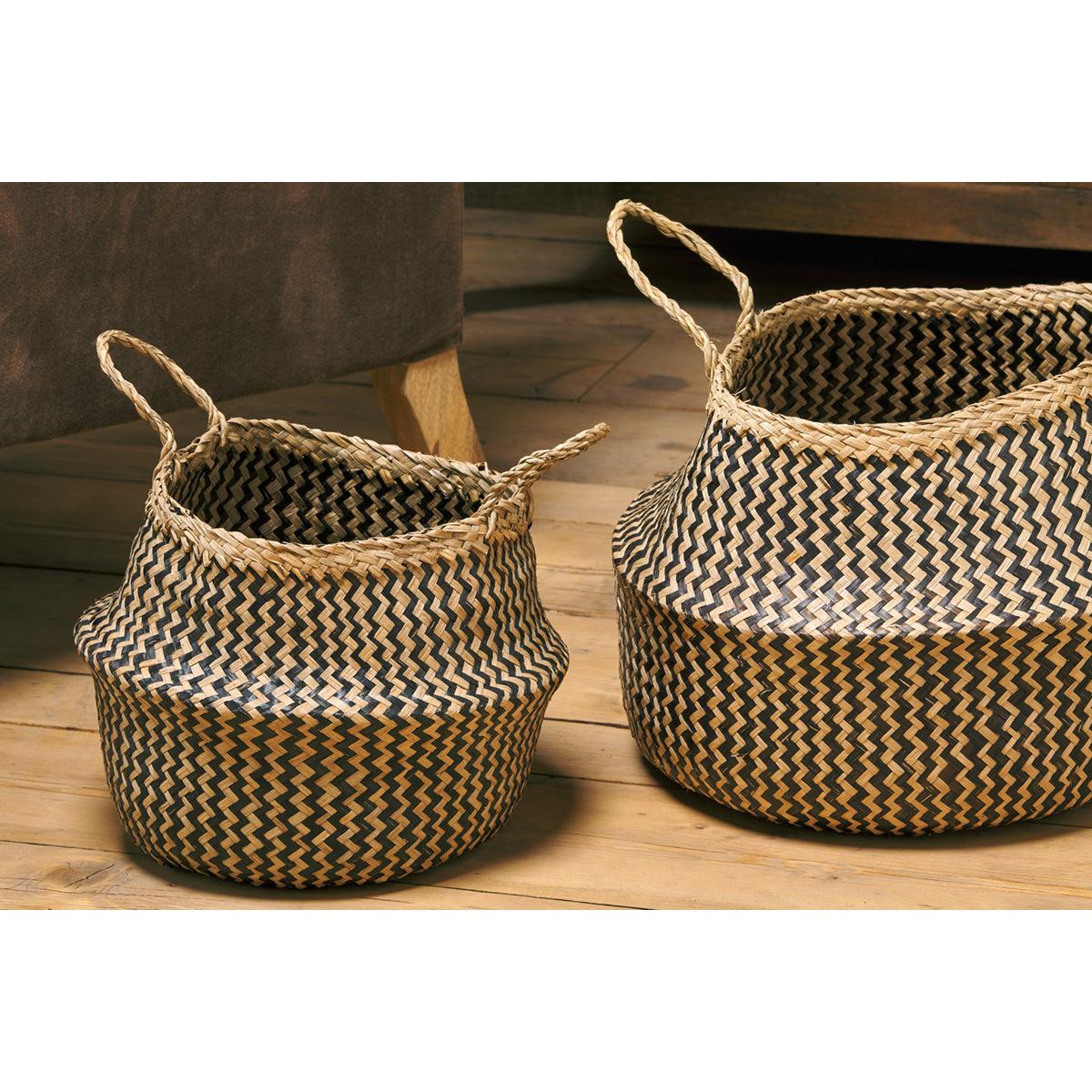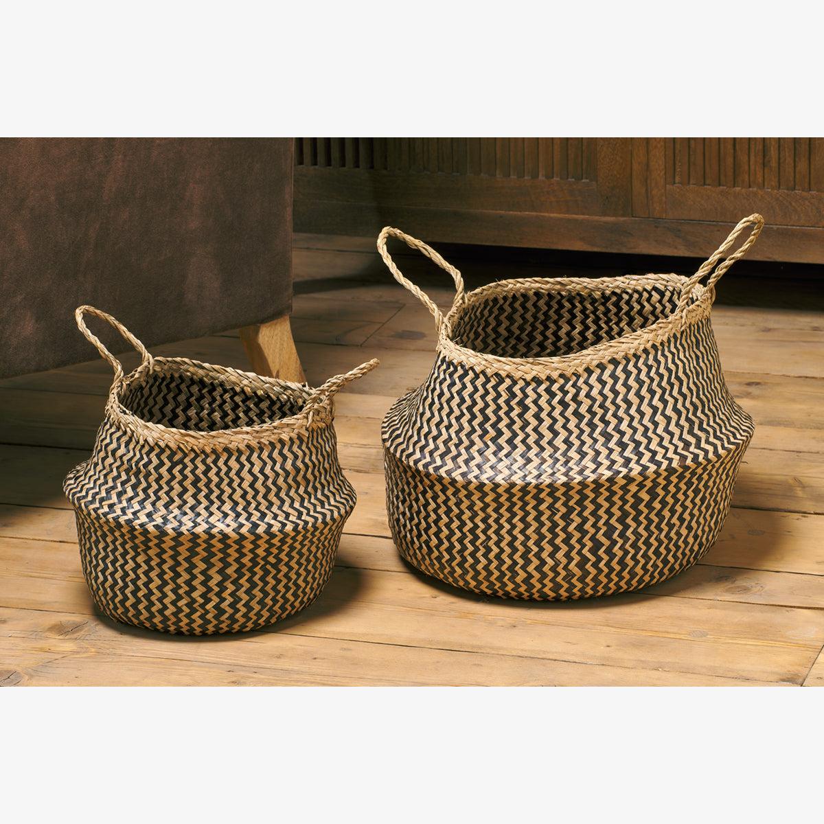 Travels through Vietnam and Cambodia brought our attention to these traditional handmade sea grass baskets. Still in regular use today, they have an age-old charm with a modern day twist from the striking zigzag weave. They make a stylish outer holder for plants, or a great way to tidy away shoes and other household bits.