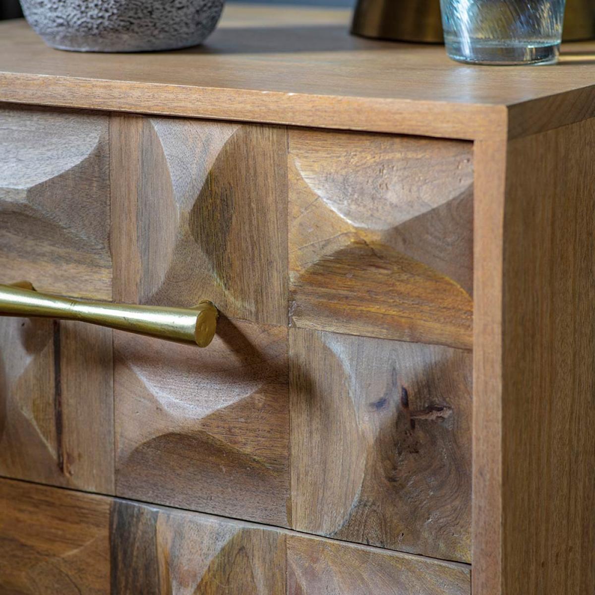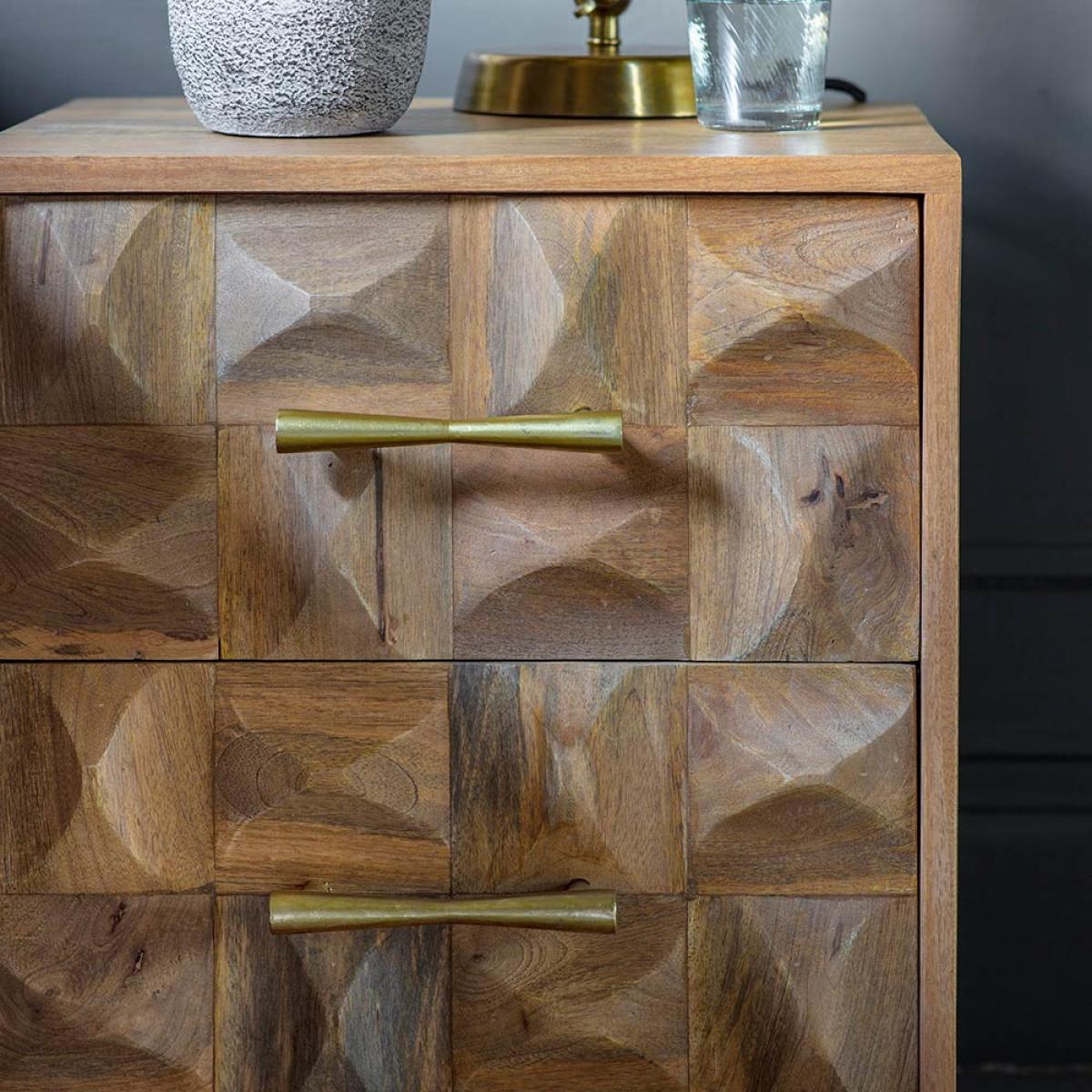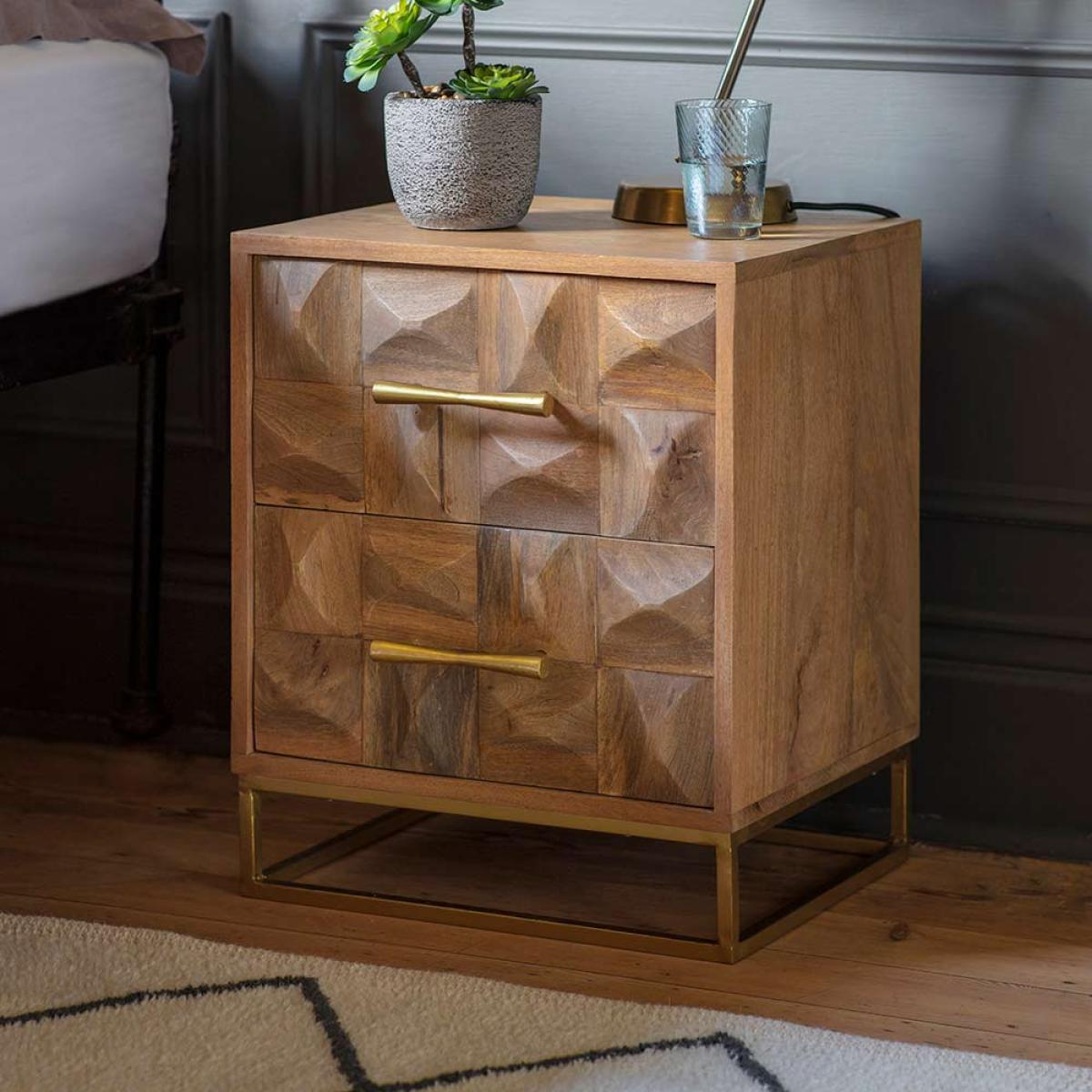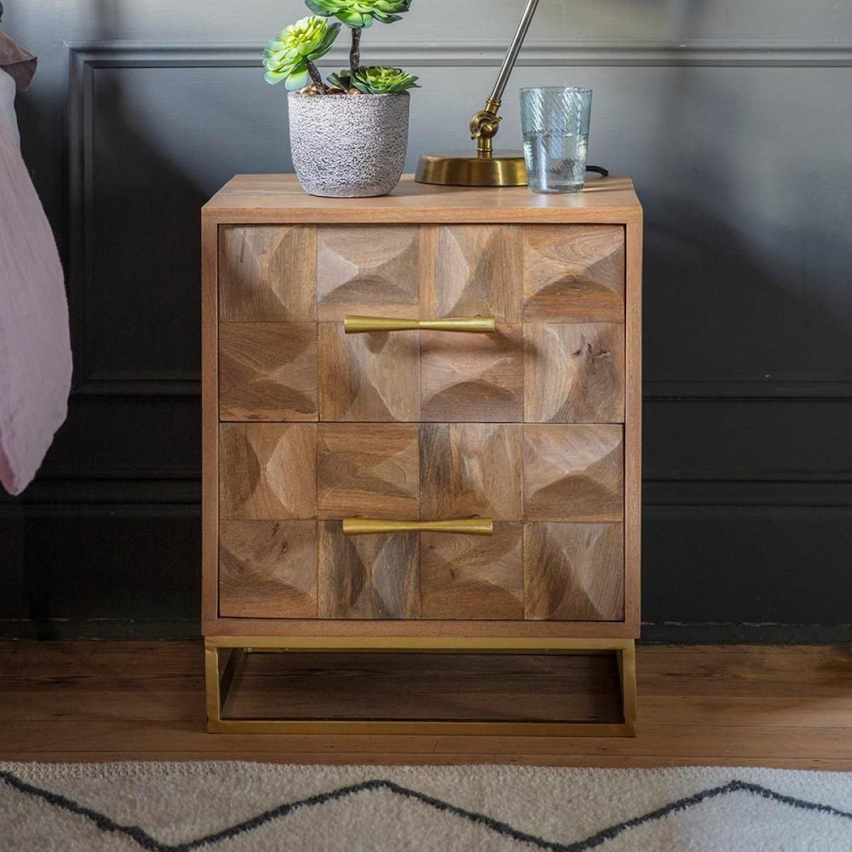 I’m a big fan of the Capitan bedside for its hand-carved front panels and warm walnut finish, which add texture without overwhelming a scheme. The slim brass base and handles give it a refined edge, making it equally at home in mid-century modern or contemporary settings. To style it, keep the top clear of clutter with just a small table lamp and a potted succulent or ceramic vase. Inside the two drawers you’ll find plenty of room for books, chargers and bedtime essentials, so the surface stays tidy. Pair it with neutral bedding and a wool rug to let the timber grain stand out.