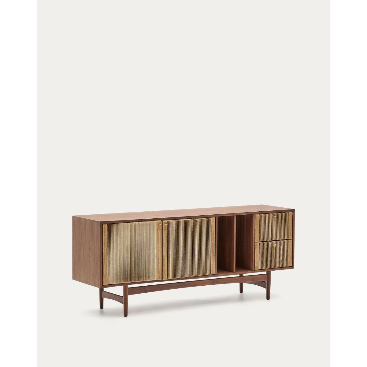 Elan sideboard 2 doors and 2 drawers veneer and solid walnut paper cord 180x73cm 100% FSC