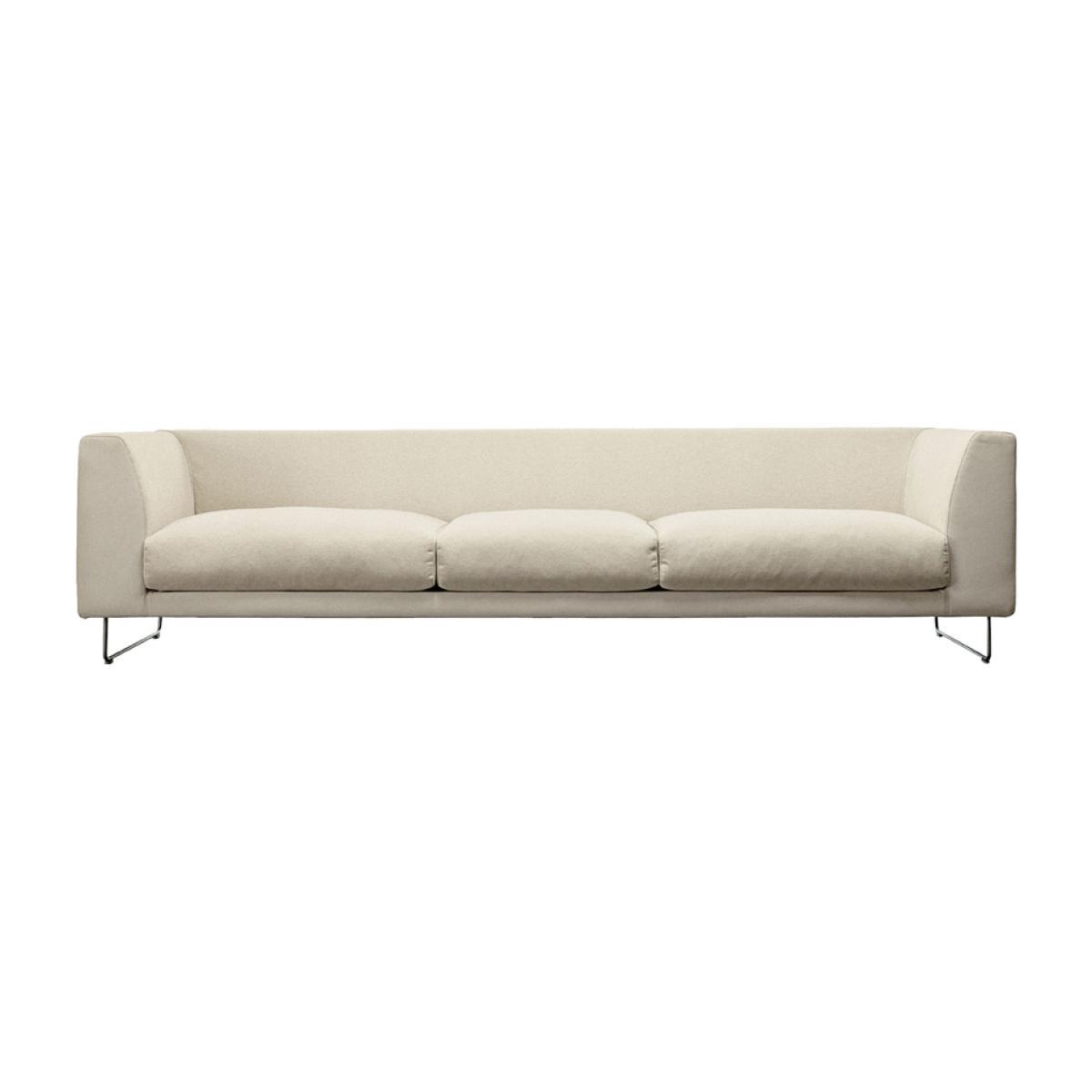 Designed in 1999 by Jasper Morrison for Cappellini, the Elan Sofa incorporates the same simplicity and linear designs for which Morrison has become famous. One of a selection of designs to come out of a longstanding creative partnership between the Italian brand, Cappellini and British designer, Jasper Morrison, the sofa is made from a metal frame, with medium-density wood panels, massive fir and poplar plywood. A stainless steel base gives it a contemporary feel, while feather cushions makes this piece an intensely comfortable seating unit.