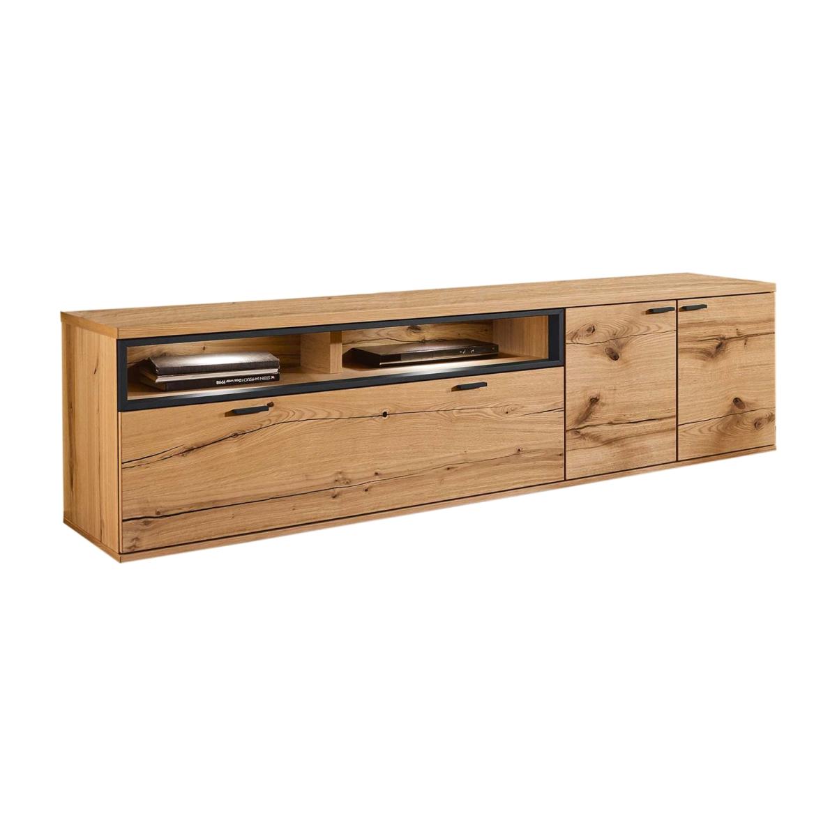 I’m a fan of the Elana lowboard for its warm oak finish paired with those slim dark trims - it adds texture without looking bulky. Its mix of open cubbies and a drop-down door is perfect for hiding media kit while still displaying books or ceramics. It suits Scandinavian, modern industrial or pared-back country settings equally well. For styling, keep the top clear apart from a low-profile art frame, a single sculptural vase and a plant; use discreet cable ties behind for a neat, uncluttered look.