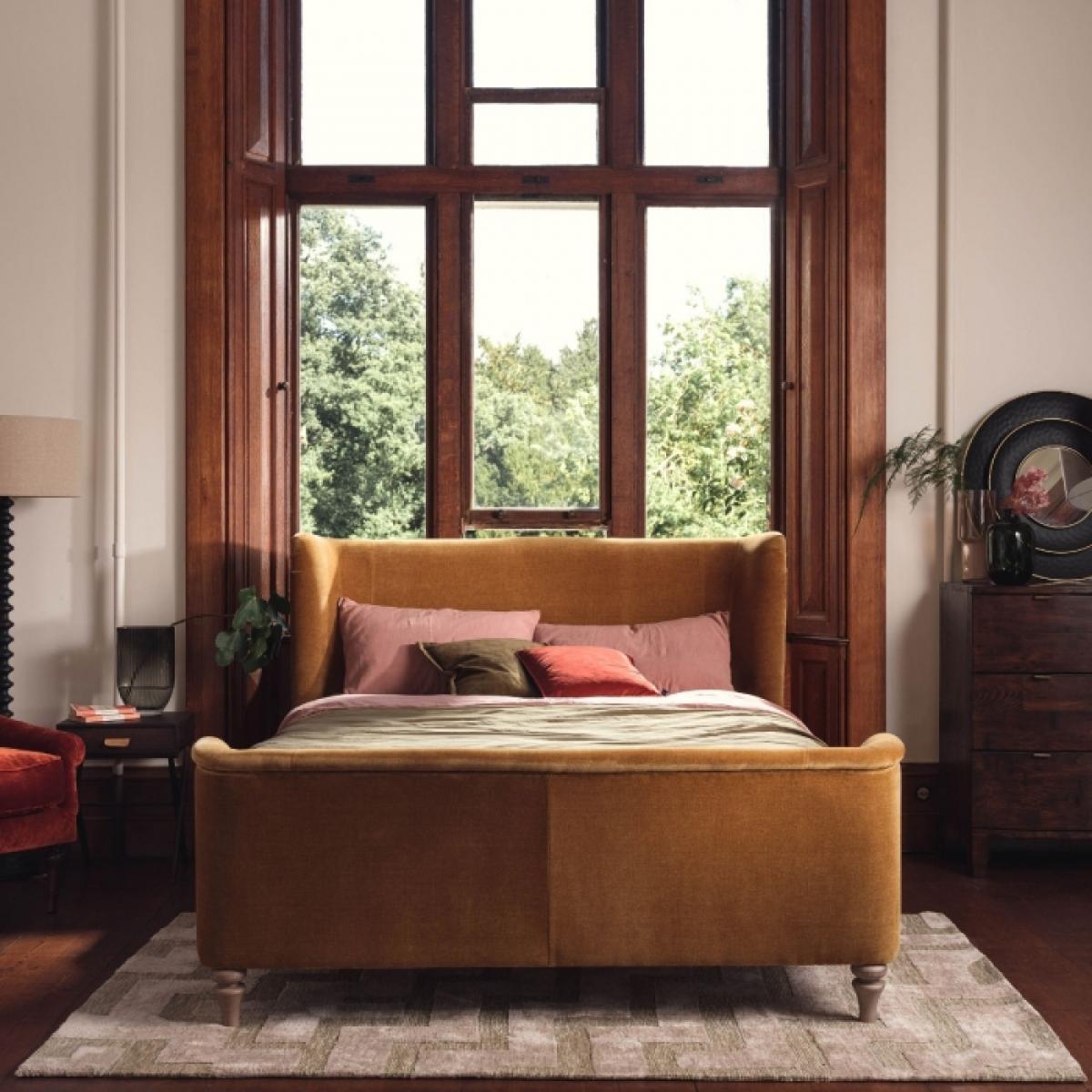 I’m a big fan of the Elara bed in orange because its wing-back headboard and low foot end give a room instant character without overpowering. The rich, warm hue works brilliantly in mid-century and contemporary schemes alike - pair it with sleek wooden bedside tables and brass-finish lamps for a smart, retro feel, or soften it with pale linens and rattan accessories in a laid-back, boho setting. For practical styling, keep bedding simple in cream or stone to let the colour sing, then layer in one or two accent cushions (try muted teal or clotted-cream) to tie the look together. Its under-bed clearance is ideal for slim storage boxes, and a pair of wall-mounted reading lights either side will complete a neat, hotel-style layout.