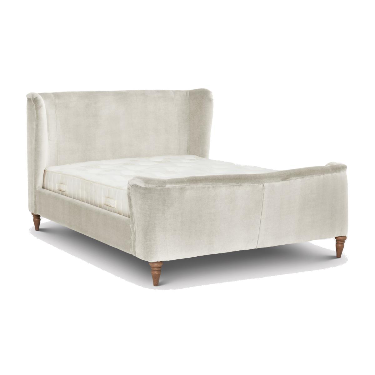 Featuring a gently winged profile and luxurious upholstery, the Elara velvet bed frame is soft in every sense. Available in a choice of colours, from eye-catching turquoise to tranquil grey, it can either make a bold style statement or transform your space into a soothing sanctuary. Elegant turned wooden feet complete the look, in a range of light or dark finishes.