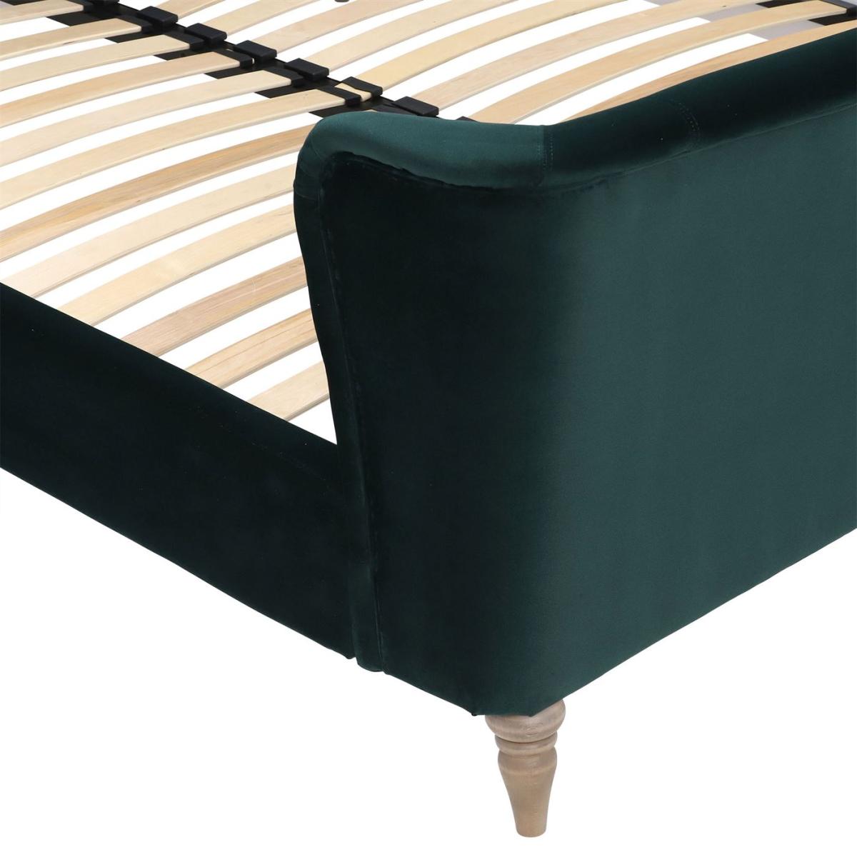 Featuring a gently winged profile and luxurious upholstery, the Elara velvet bed frame is soft in every sense. Available in a choice of colours, from eye-catching turquoise to tranquil grey, it can either make a bold style statement or transform your space into a soothing sanctuary. Elegant turned wooden feet complete the look, in a range of light or dark finishes.