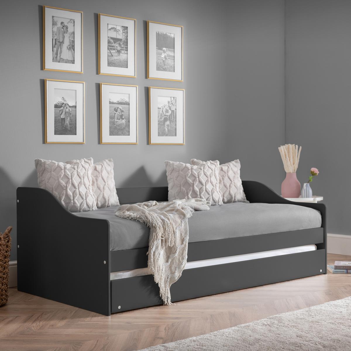 With a sleek curved design, the Elba daybed comes in three beautiful finish options of Surf White, Dove Grey, or Anthracite. Perfect for casual use, or as a guest bed with the classic pull out underbed.
