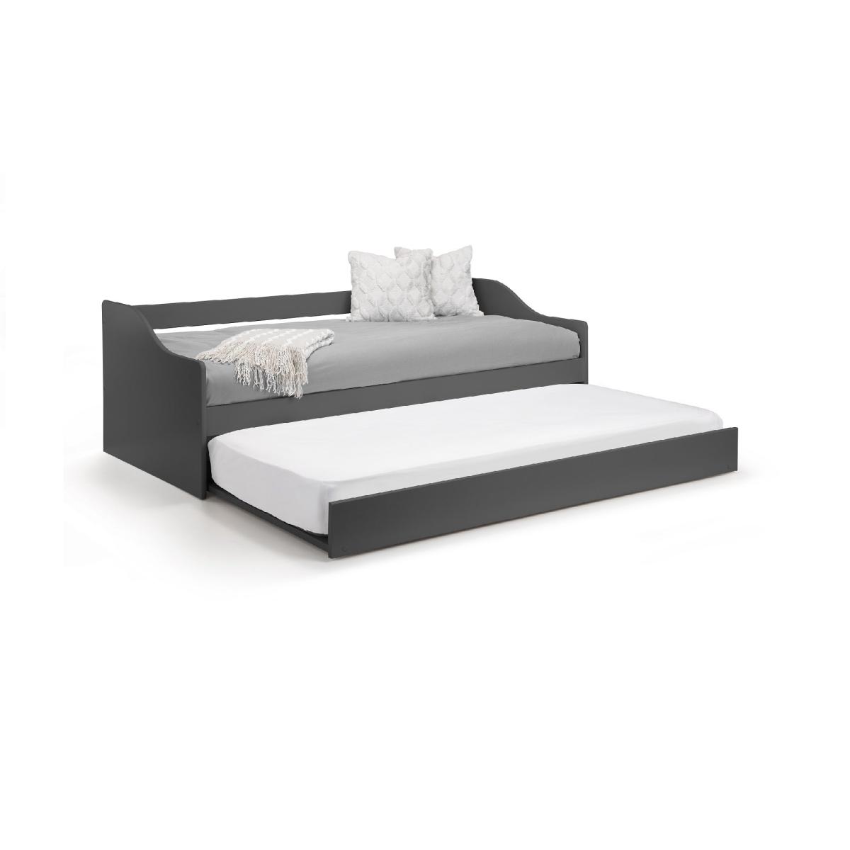 Sleek curved design perfect for any modern decor Classic pull-out underbed for guests Available in Dove Grey, Anthracite, or Surf White Upgrade your bedroom with the sleek and stylish Elba Daybed. Its curved design and classic pull-out underbed make it perfect for accommodating guests while maintaining a modern aesthetic. Available in Dove Grey, Anthracite, or Surf White, the Elba Daybed is sure to add a touch of elegance and functionality to any bedroom.