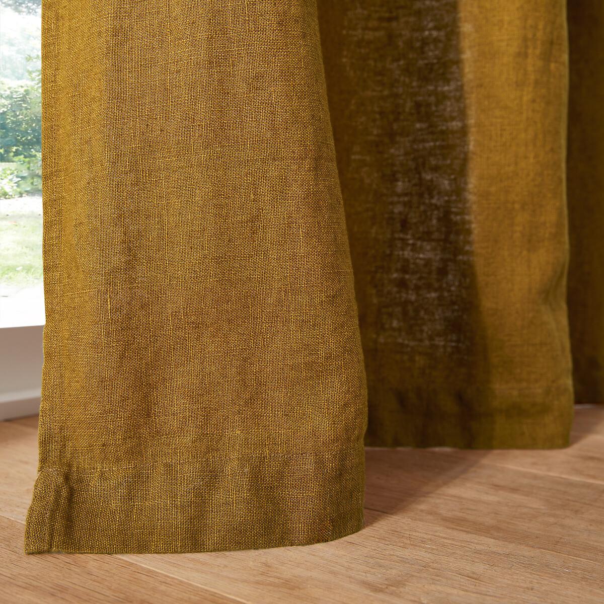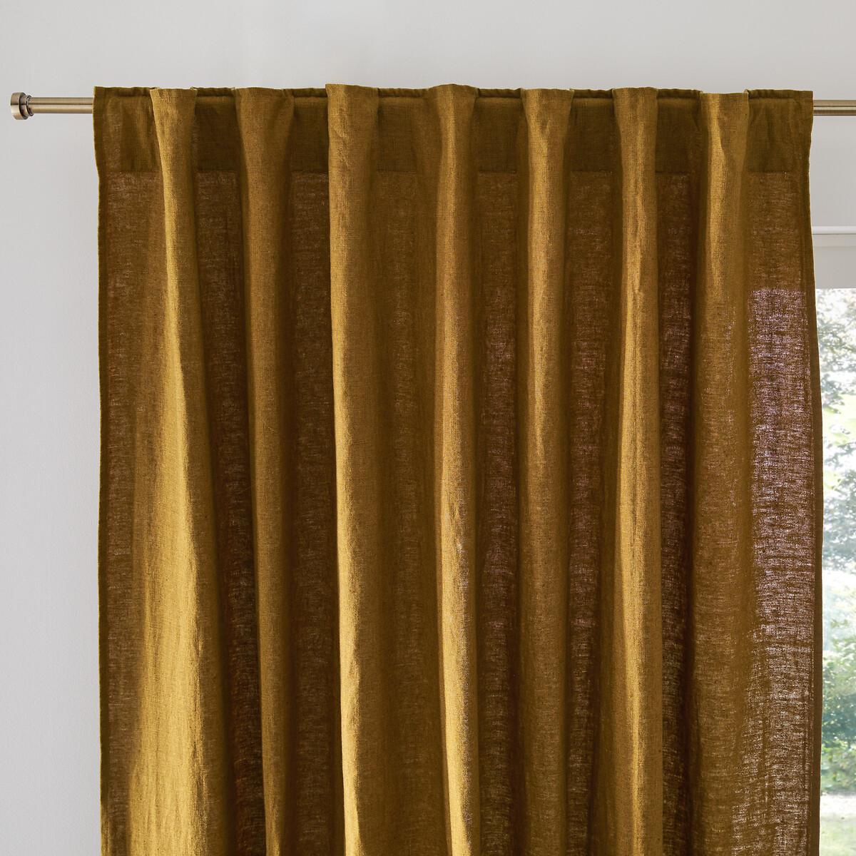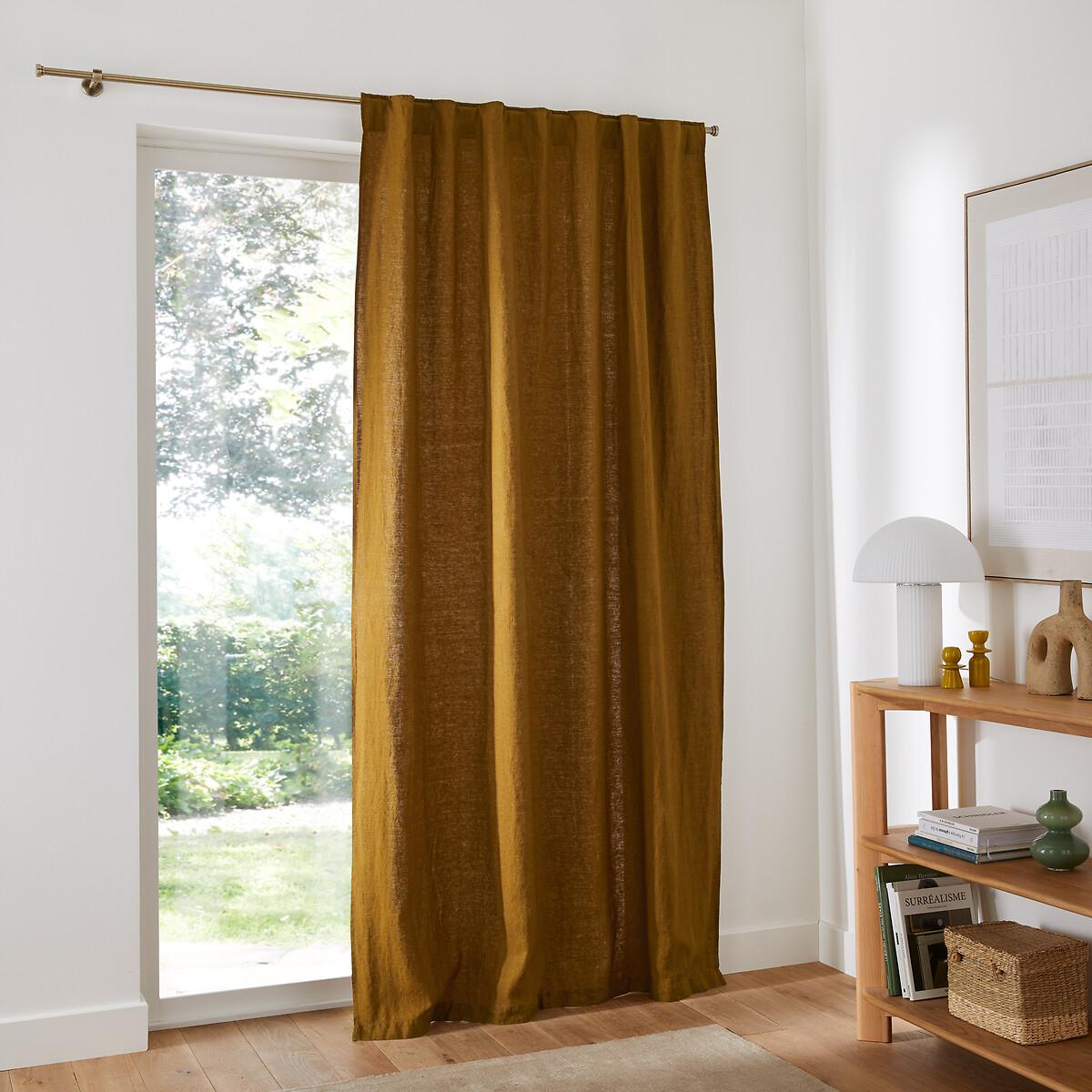 Made from heavy linen with obvious elegance, the Elba curtain with hidden tabs dresses your windows, adding a sophisticated look to your interior.. Appreciated for its authenticity, linen becomes more beautiful and softer with every wash.. The tabs give a regular wave to the curtain and an impeccable straight fall. Hidden behind the fabric for an impeccable finish, they also hide the rod. Product Details • Screening • 100% linen, (280g/m²) • Top finish : hidden legs • Finished bottom :Plain hemmed edging. To help you in the choice and maintenance of your curtains, do not hesitate to consult our guide by typing "Curtain Buying Guide" in our search engine on the site. Care Advice • Machine washable at 30°C • Maximum shrinkage after washing : 7 to 10% approx. Fabrics made from natural fibres may shrink in the first wash. Always wash your curtains before making any alterations. • Do not tumble dry • If you don't need to iron them (linen curtains, Voile Panel...), let the curtains air dry by hanging them immediately after washing, making sure to spread them out to their full width. • If you want to iron your curtains, we recommend using a low-temperature steam iron or a steamer. Dimensions • Drop 250 x Width 140cm • Drop 300 x Width 140cm • Drop 350 x Width 140cm • OEKO-TEX® Standard 100. Standard 100 certification by OEKO-TEX® tests textile products for harmful substances via an independent, international label.